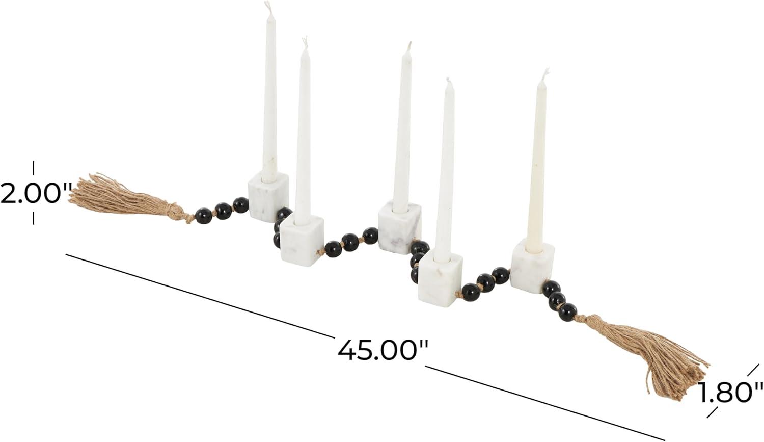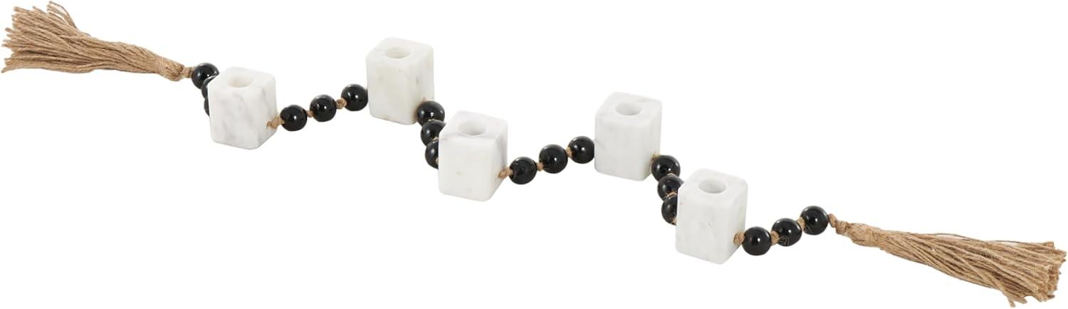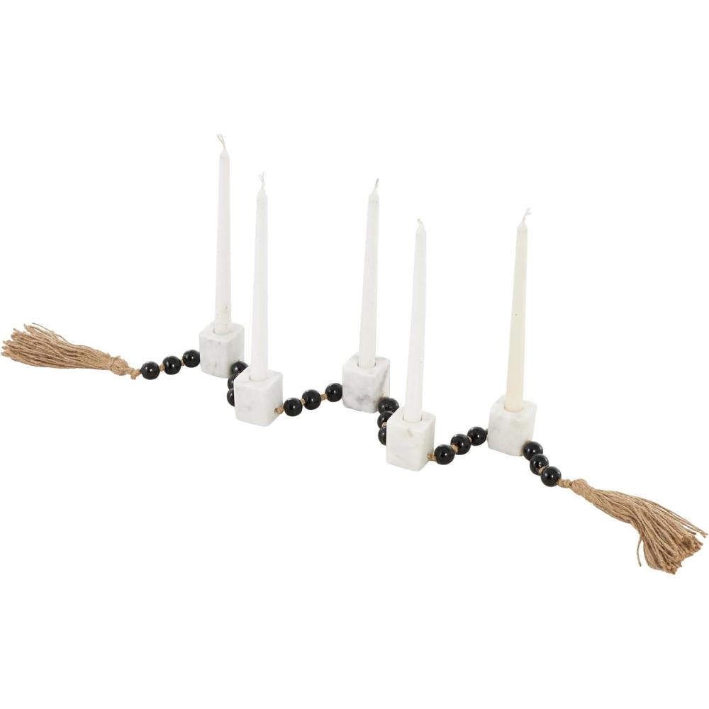 Traditional candle holder for home decor is molded from marble, adorned with glass molded beads, and is elegantly bound with jute rope, ensuring both durability and style. The matte white candle holder for centerpiece boasts a classic square shape and round beads, making it a standout piece. Wipe clean with a dry cloth. Perfect for living rooms or dining areas, this white candle stand enhances any décor. Designed with felt or rubber stoppers at the base that prevent scratching furniture and table tops, as well as sliding around. Can hold 5 tealight candles, not included. This item ships in 1 carton. Marble candle holder makes a great gift for any occasion. Suitable for indoor use only. This item ships fully assembled in one piece. Marble is a product of nature and no two pieces are exactly alike. It is prone to variations in color and/or patterns in the material that add to the beauty and charm of the piece.. Made in India. This is a single white colored candle stand. Traditional style.