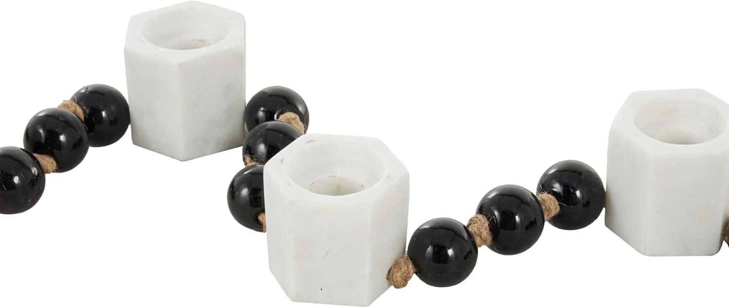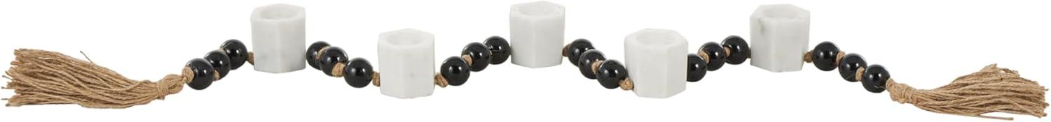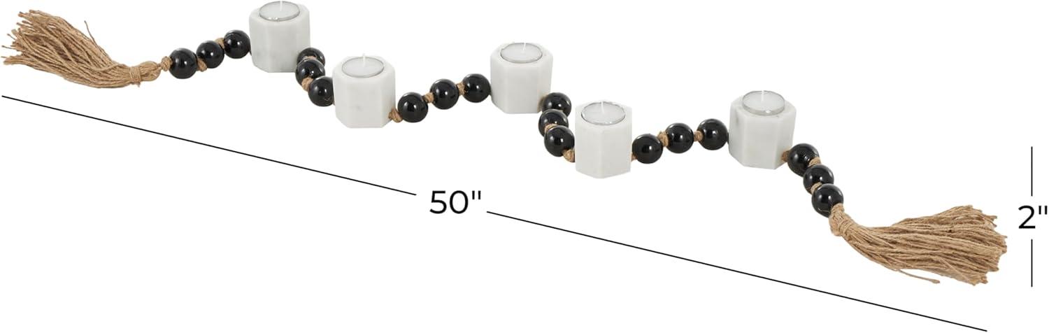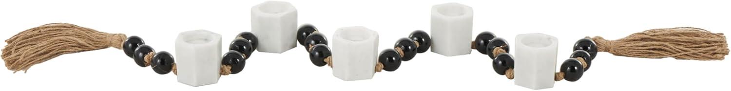Deco 79 Marble Decorative Candle Holder Garland Candle Stand with Brown Tassel and Black Beads, Candlestick Holder 50″ x 2″ x 2″, White