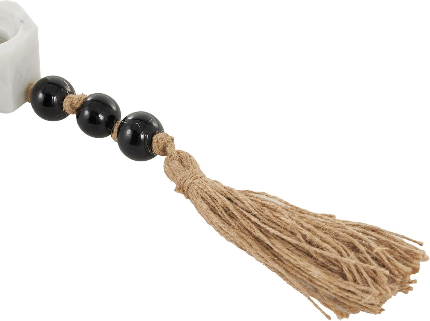 Deco 79 Marble Decorative Candle Holder Garland Candle Stand with Brown Tassel and Black Beads, Candlestick Holder 50" x 2" x 2", White