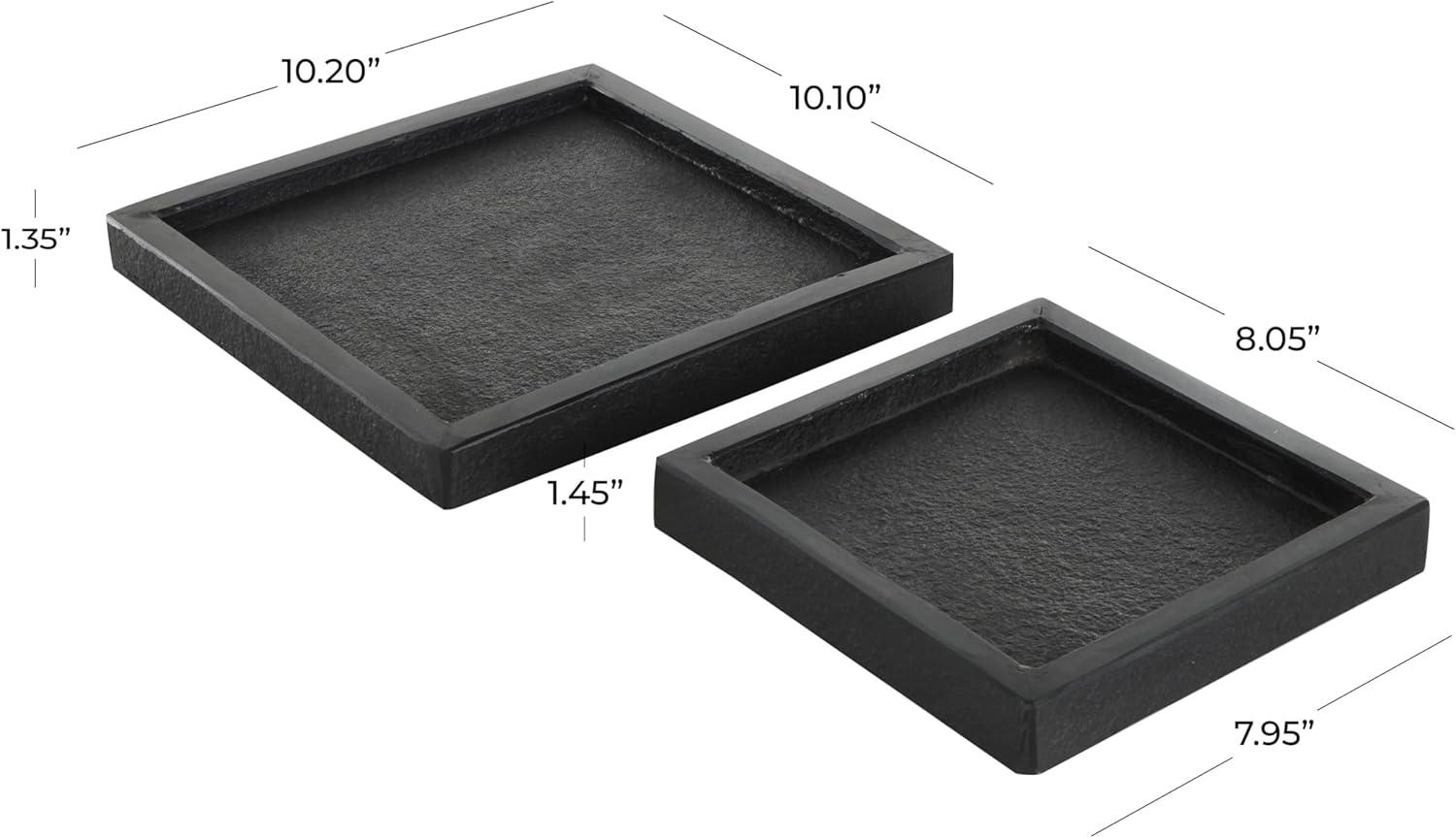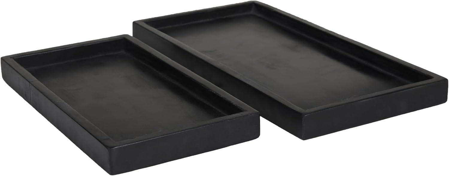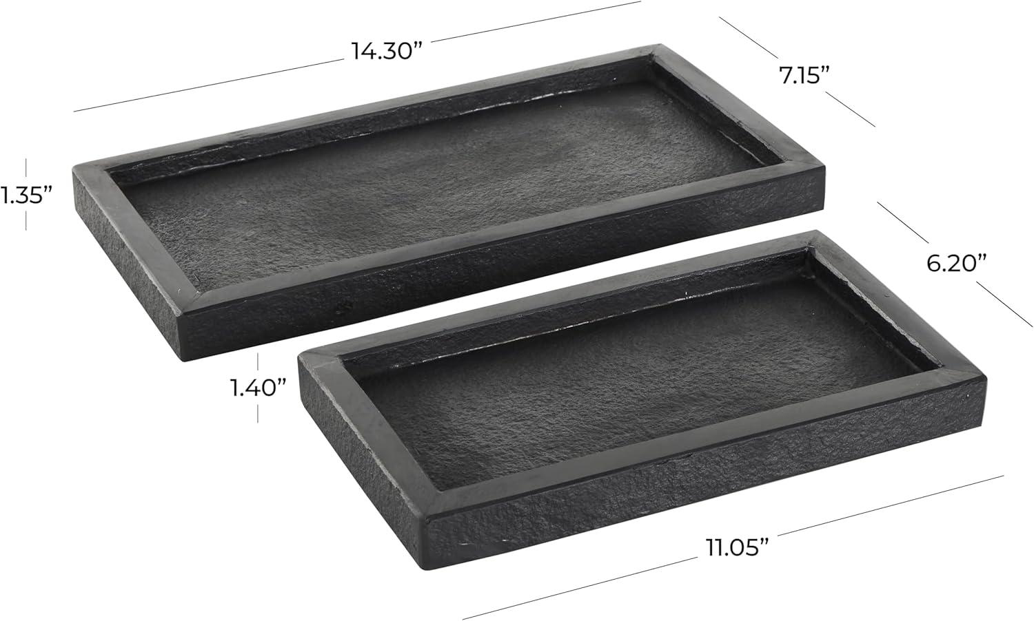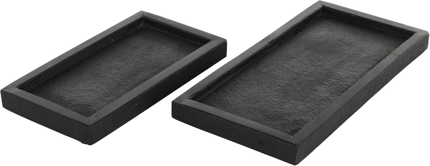 Deco 79 Marble Minimalistic Slim Textured Tray, Set of 2 14.3", 11.05" W, Black(Black)