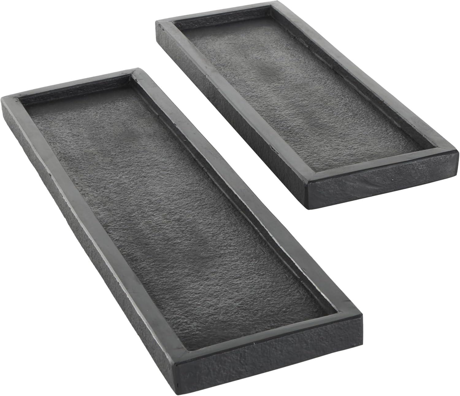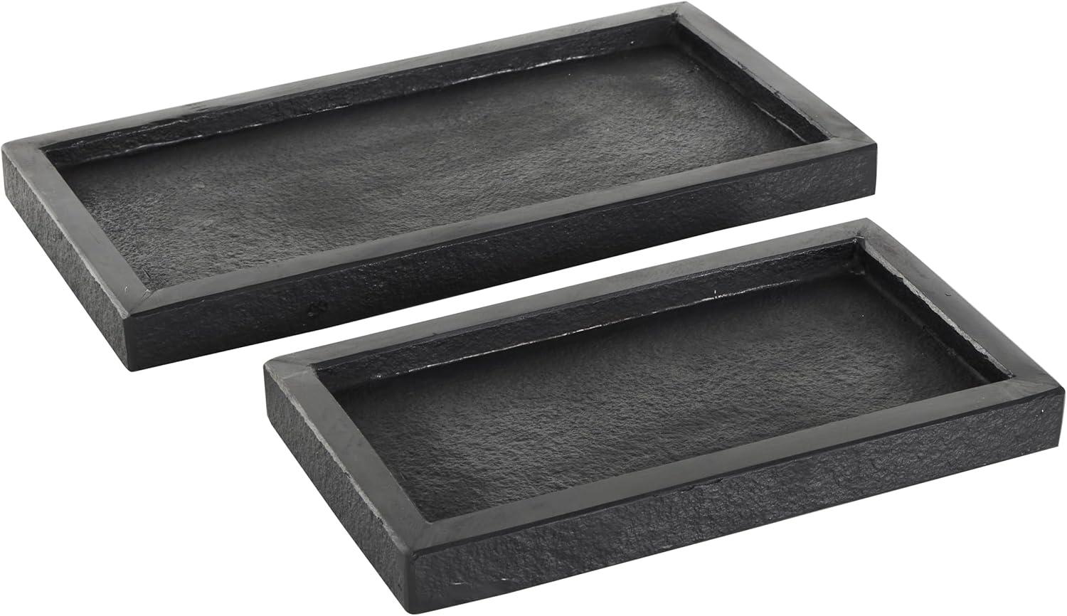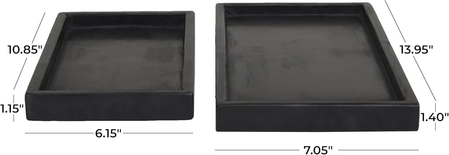 Deco 79 Marble Minimalistic Slim Textured Tray, Set of 2 14.3″, 11.05″ W, Black(Black)