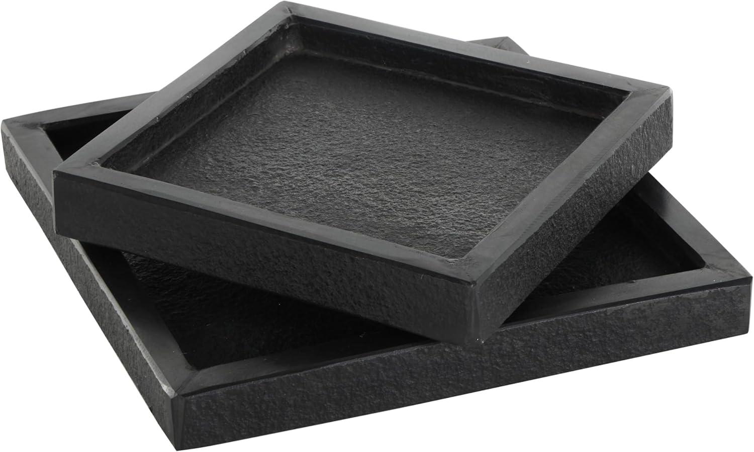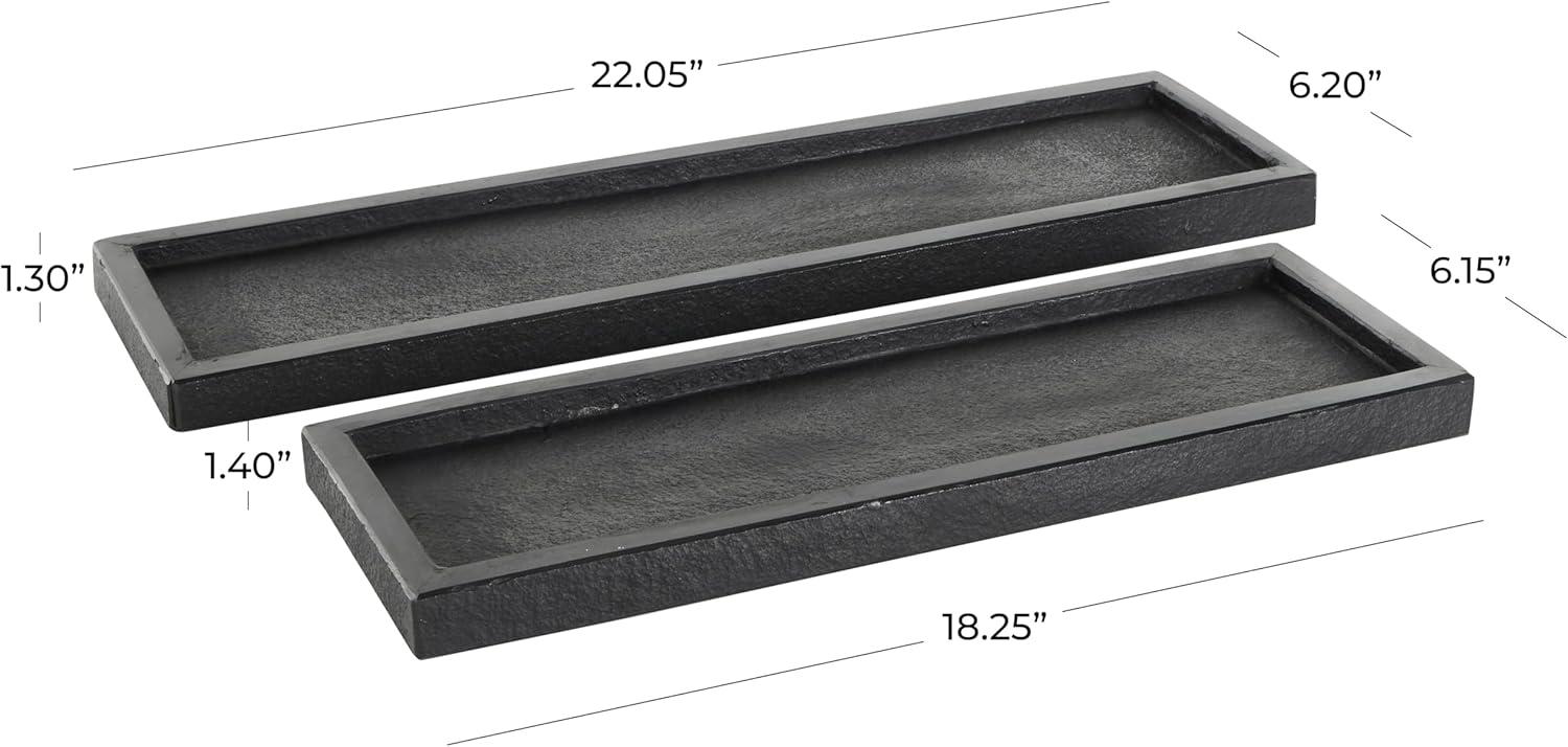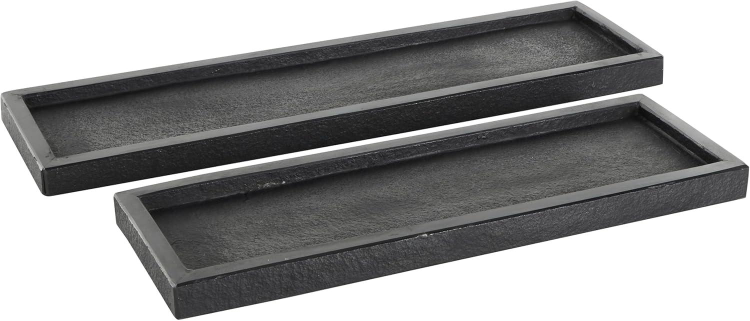 Deco 79 Marble Minimalistic Slim Textured Tray, Set of 2 14.3″, 11.05″ W, Black(Black)