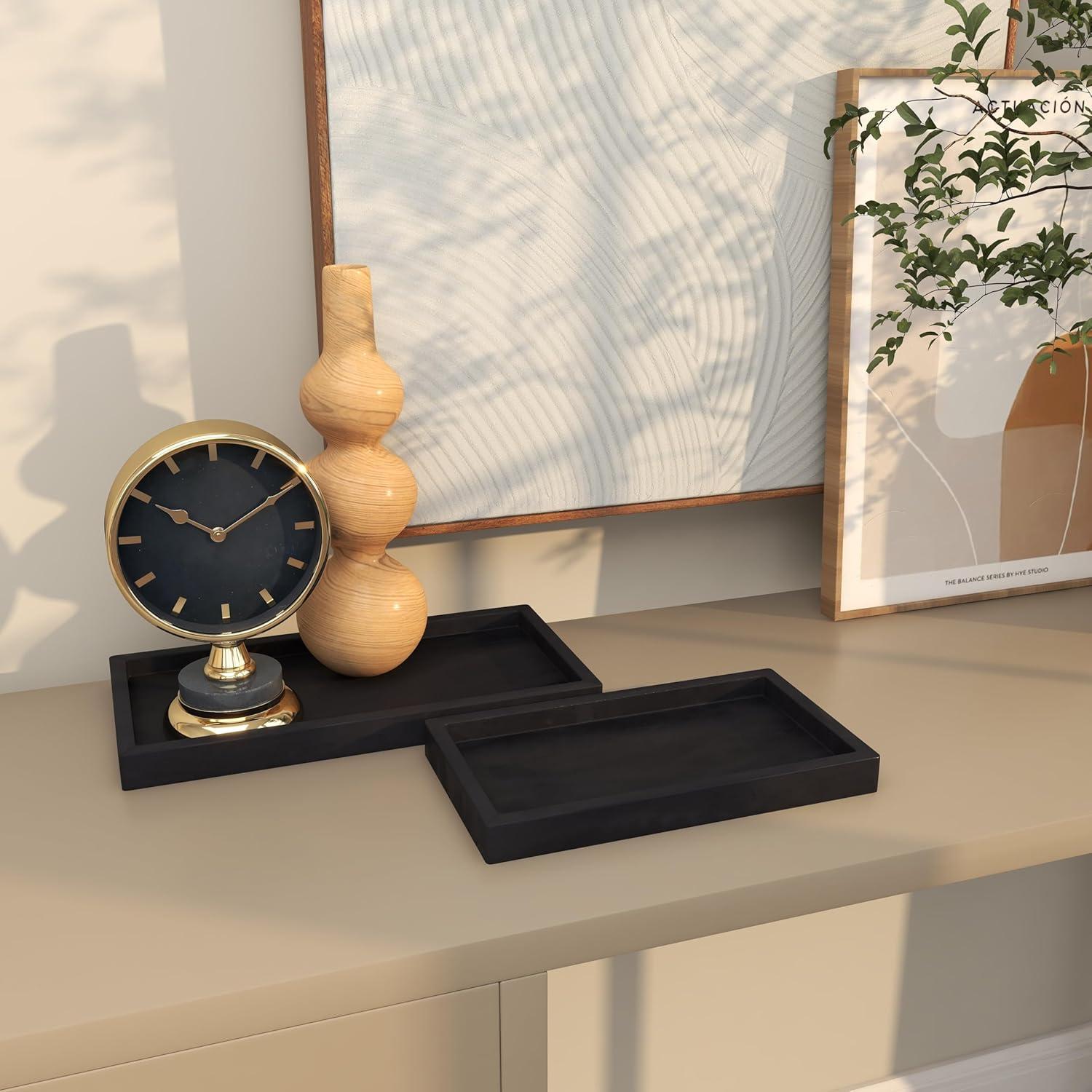 2 SMALL SIZE TRAY FOR HOME: Each black marble tray measures 14.3L x 7.15W x 1.35H , 11.05L x 6.2W x 1.4H inches, and collectively weighs 12.73 lbs