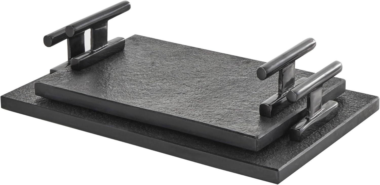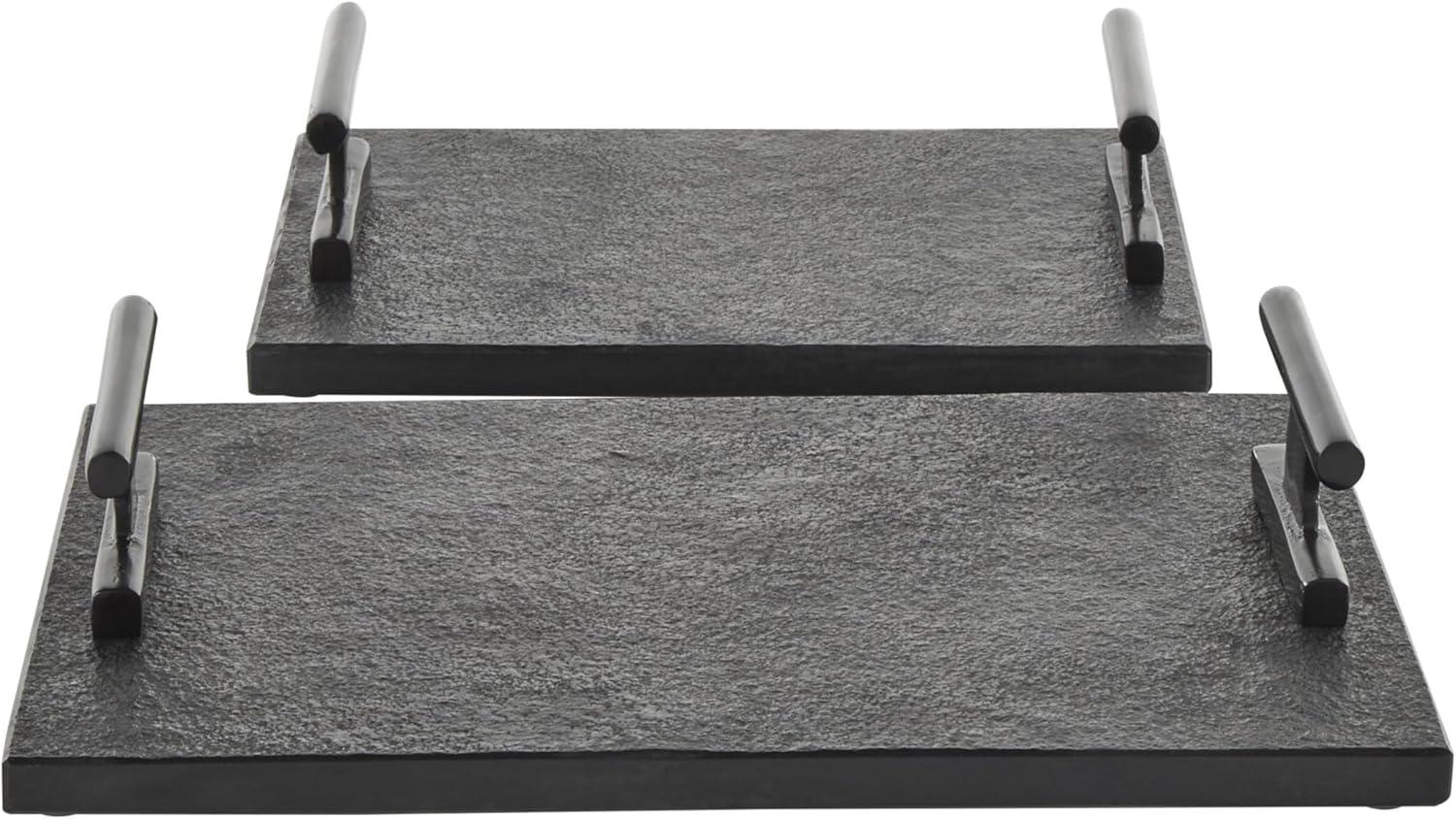 Deco 79 Marble Textured Tray with Rod Handles, Set of 2 15", 12" W, Black