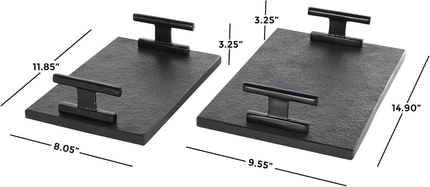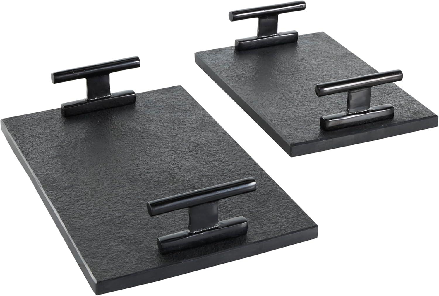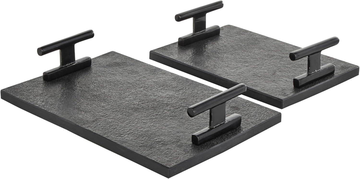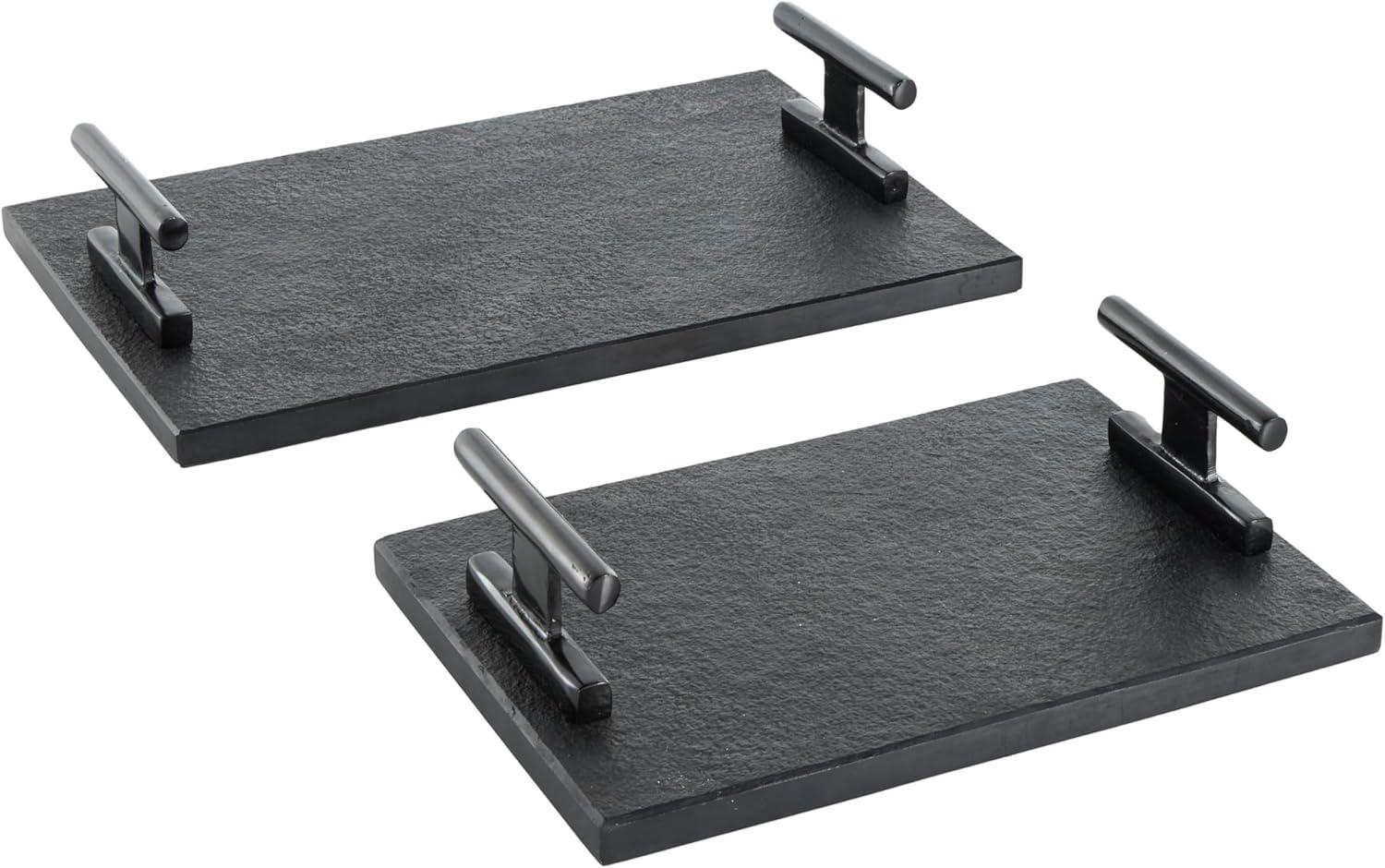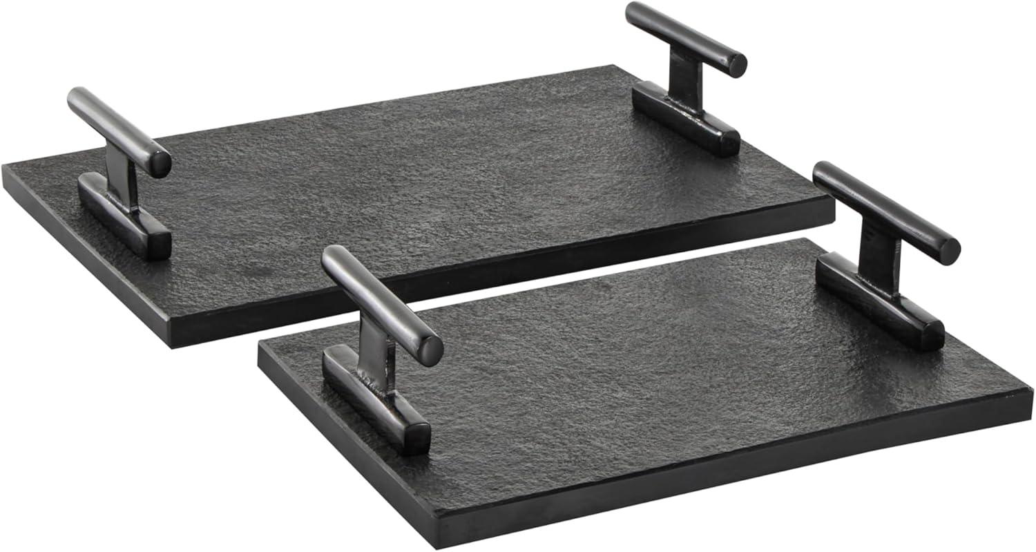 Deco 79 Marble Textured Tray with Rod Handles, Set of 2 15″, 12″ W, Black
