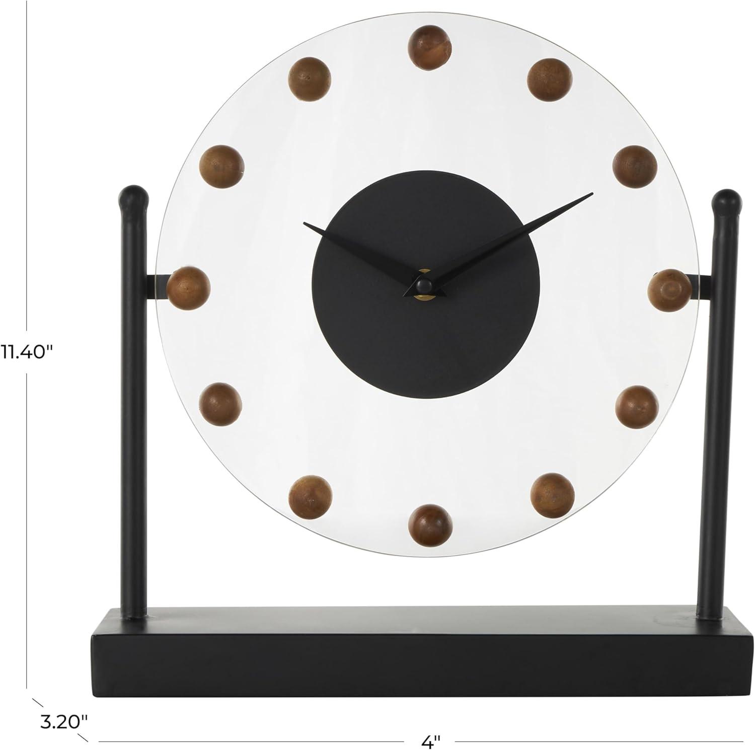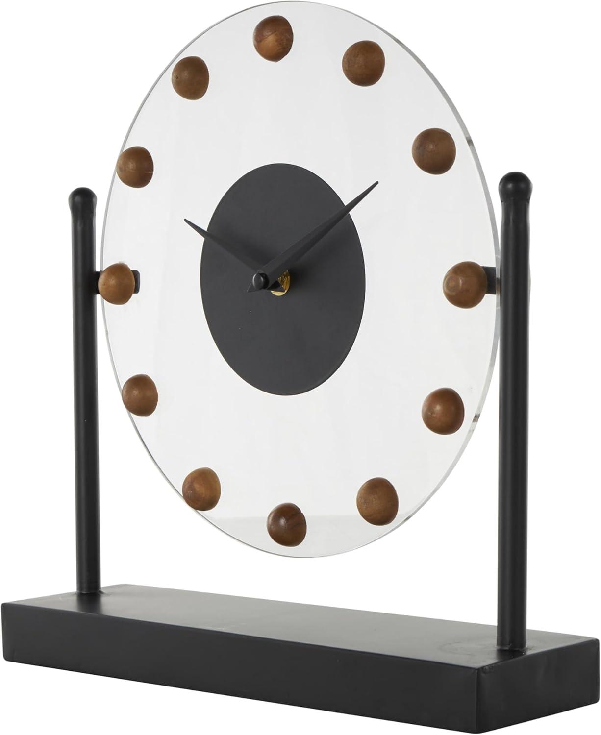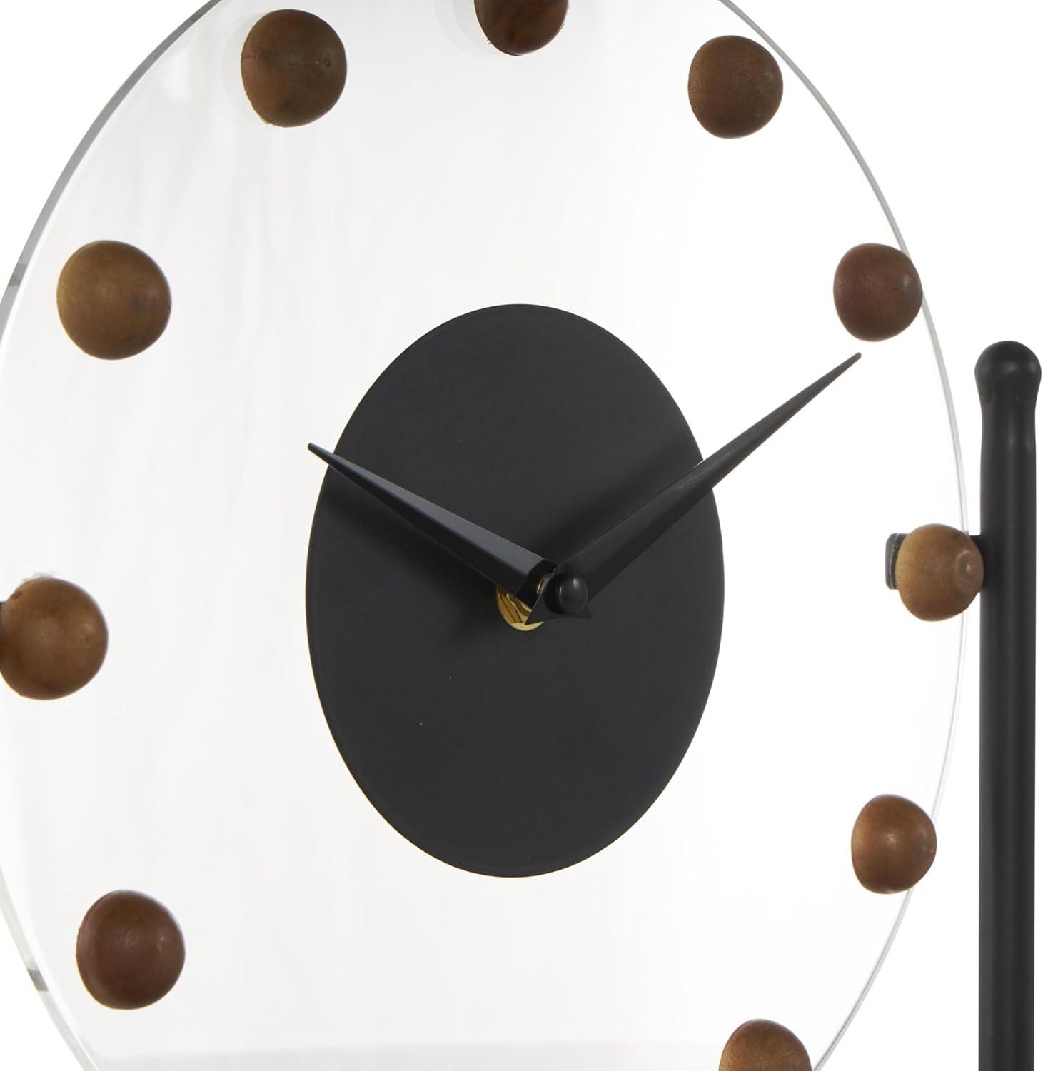 Deco 79 Metal Acrylic Face Clock with Wood Ball Accents, 11" x 3" x 11", Black(Black)