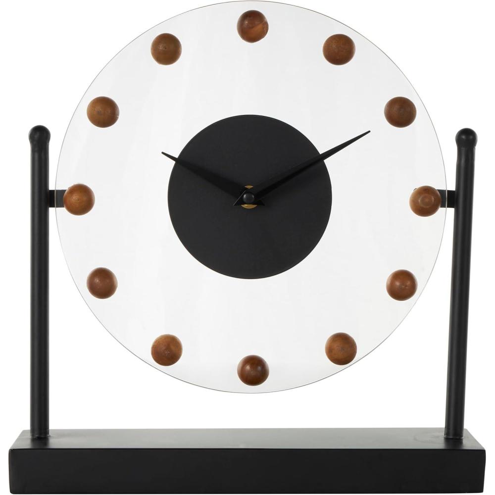 Deco 79 Metal Acrylic Face Clock with Wood Ball Accents, 11″ x 3″ x 11″, Black(Black)