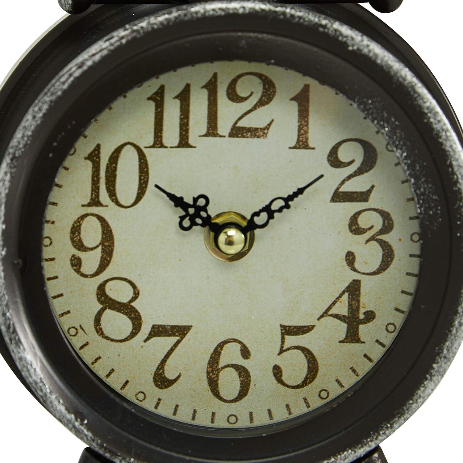The country cottage set of 2 clocks for home is meticulously welded with iron shaped into a bicycle and combined with molded polystone material. The matte multicolored clock for decor boasts a charming bicycle shape with intricate clock hands, making it a unique addition to any room. Wipe clean with a dry cloth. Improve your time management skills and keep a clock close by with this charming piece. A dashing display on any surface to help you manage your time throughout the day. Place this multicolored set of 2 mantel clock in your living room or bedroom to add an elegant and punctual vibe. Requires 2 AA batteries, not included. This item ships in 1 carton. The clock face features black iron clock hands and distressed Arabic numeral. The clock mechanism runs silent. Propped up by kickstands. Iron clock makes a great gift for any occasion. Suitable for indoor use only. This item ships fully assembled in one piece. This multi colored iron mantel clock comes as a set of 2. Country Cottage style.