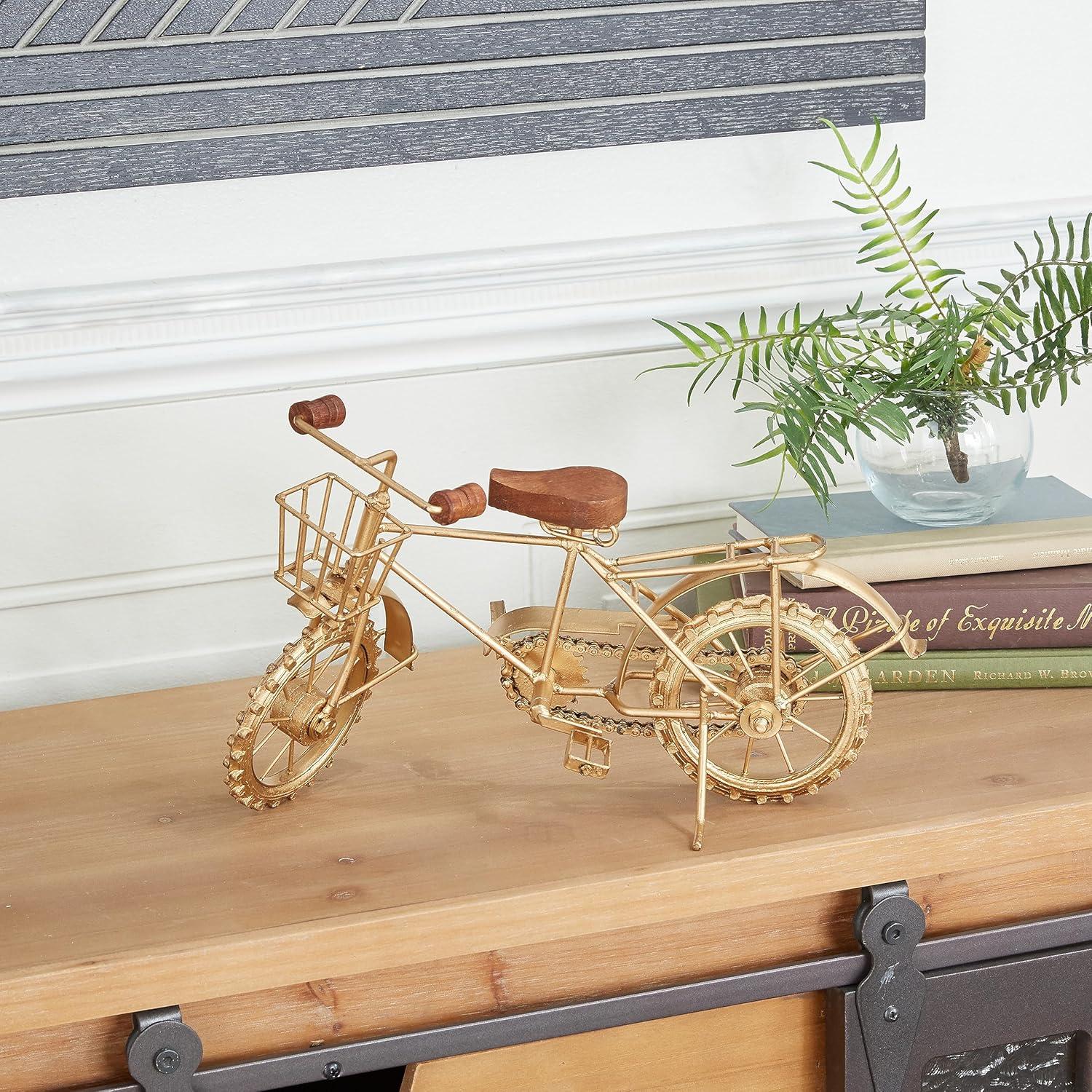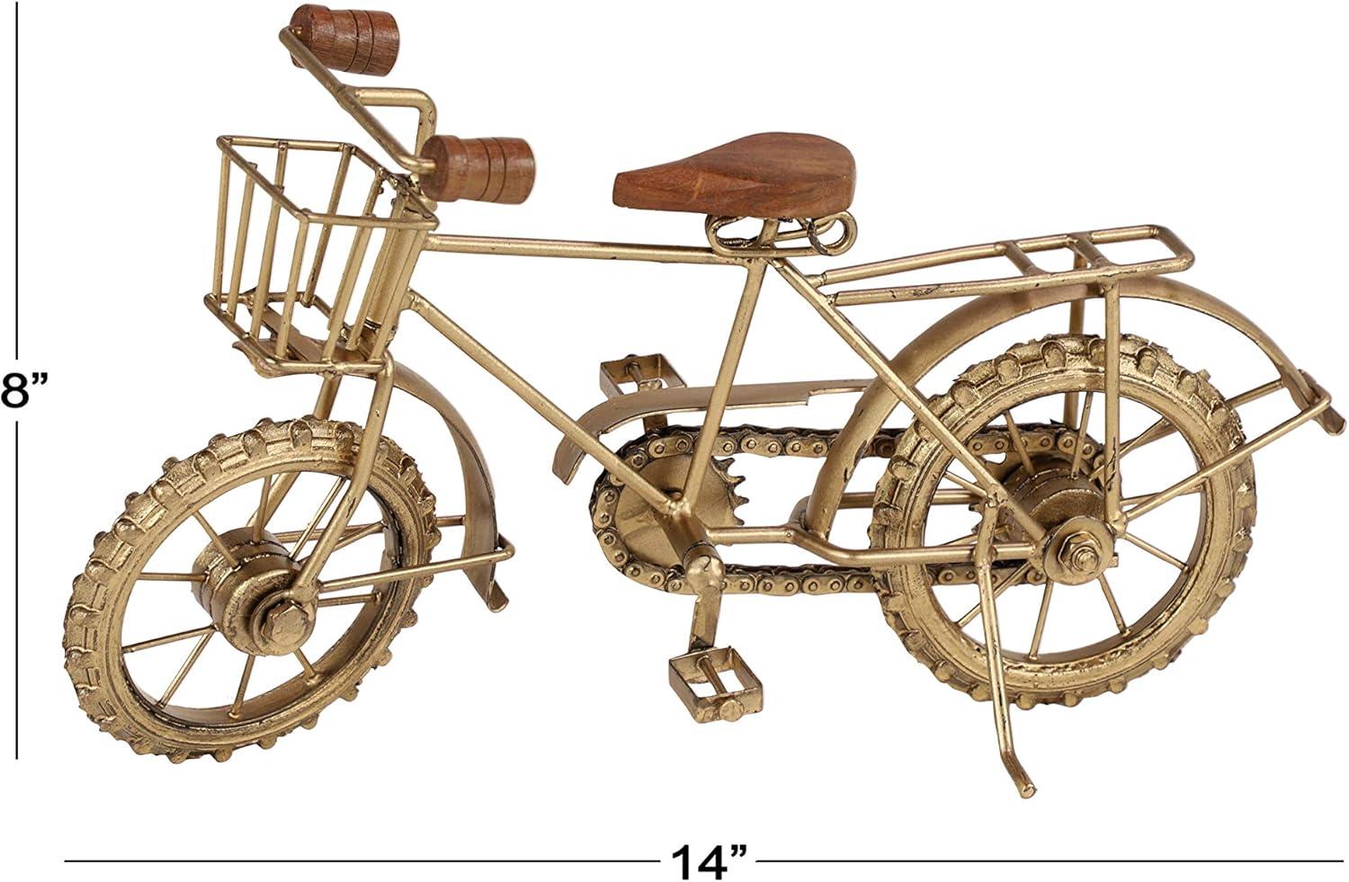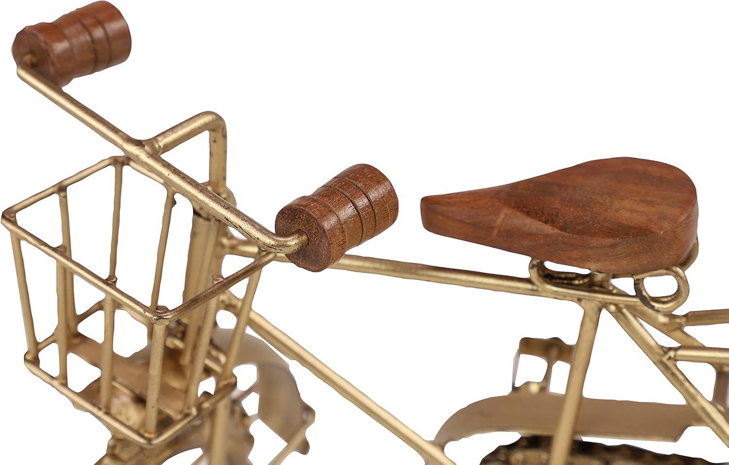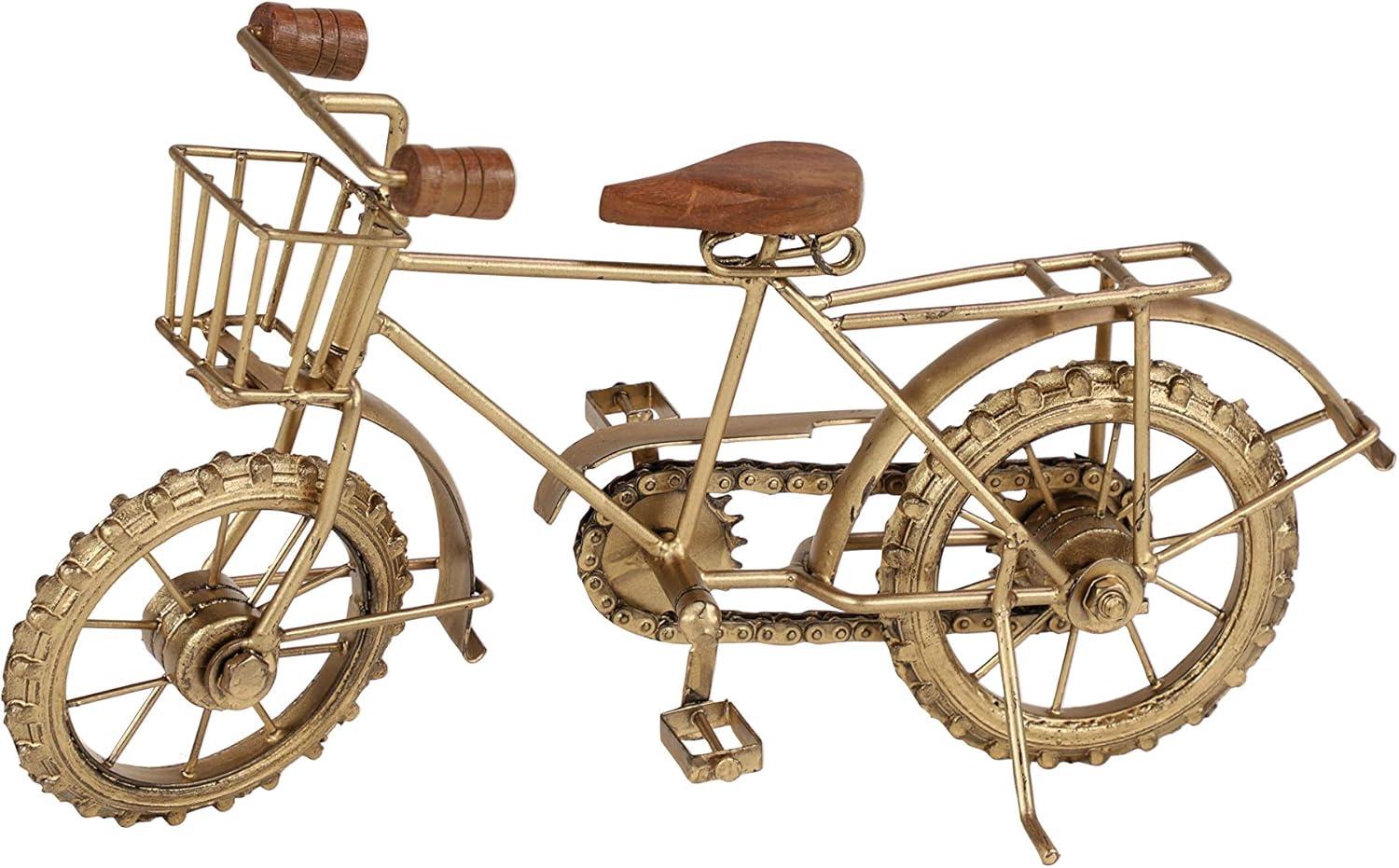 8 inch rustic traditional metal bicycle replica home decor with basket featuring authentic wooden seat and handle bars. Suitable to use as a decorative item. Best for both indoor and outdoor use.