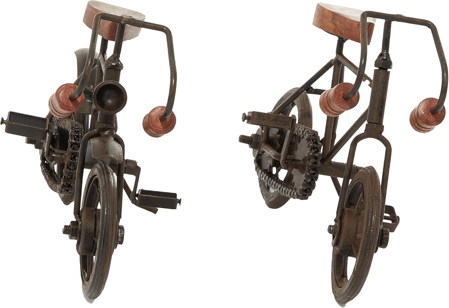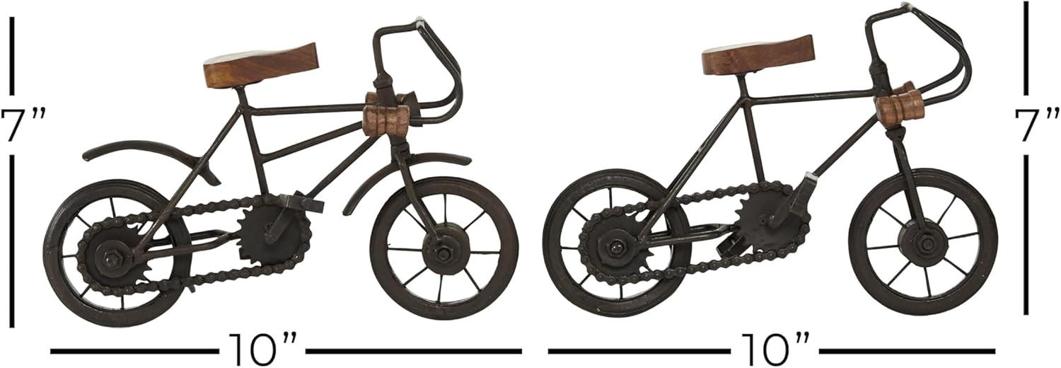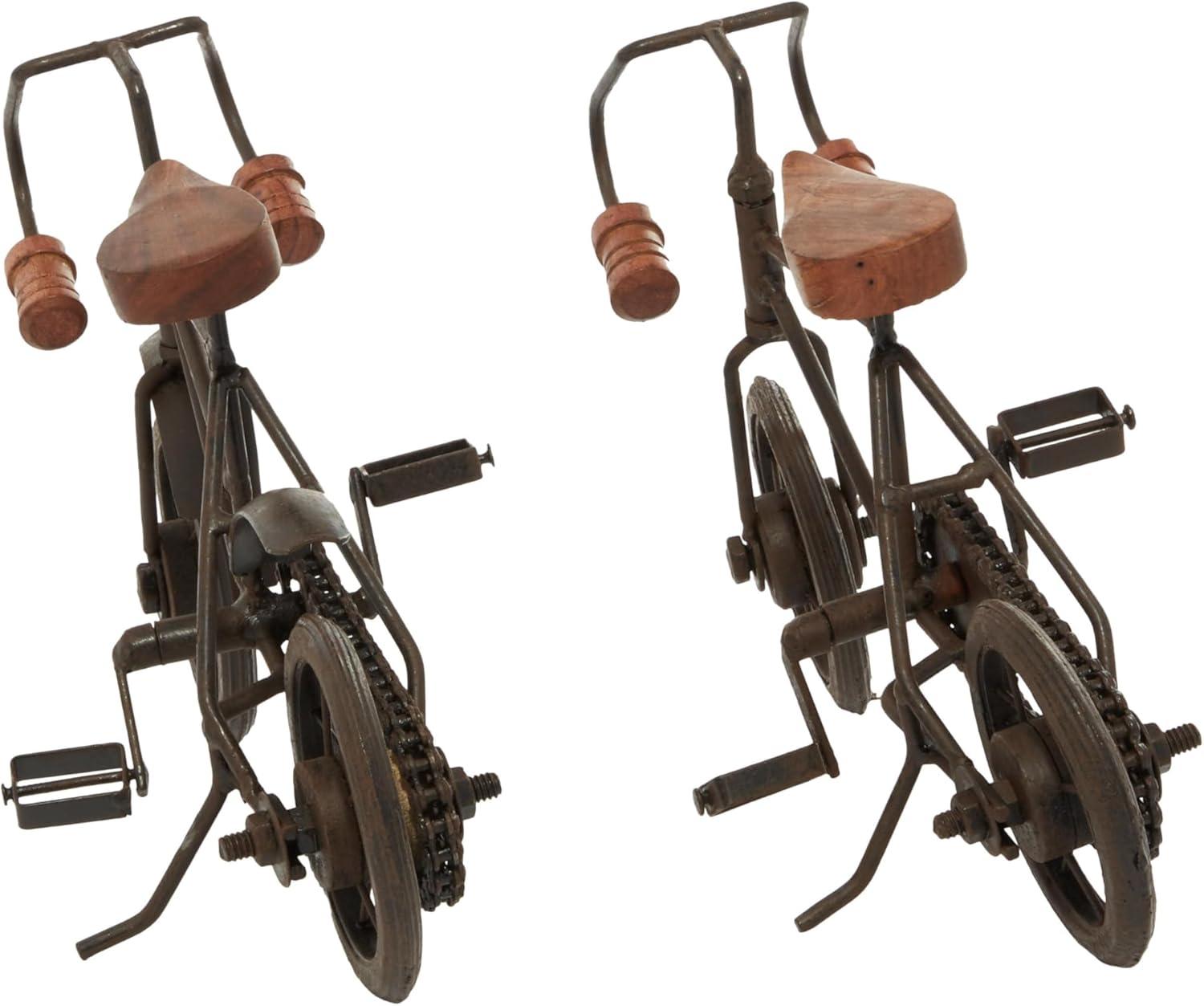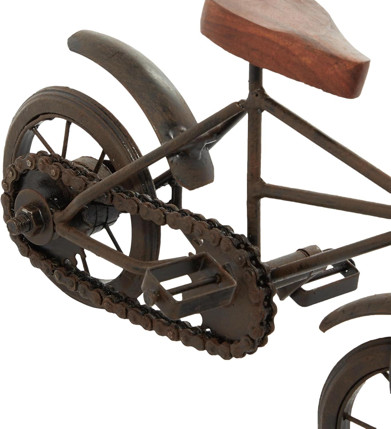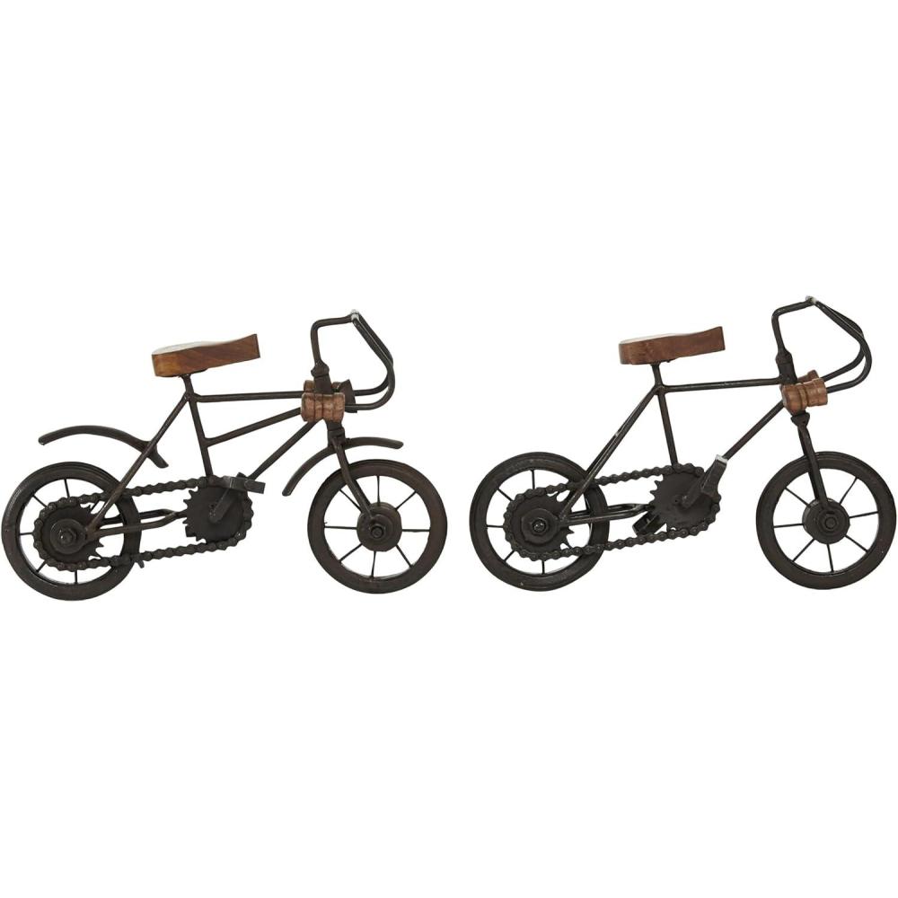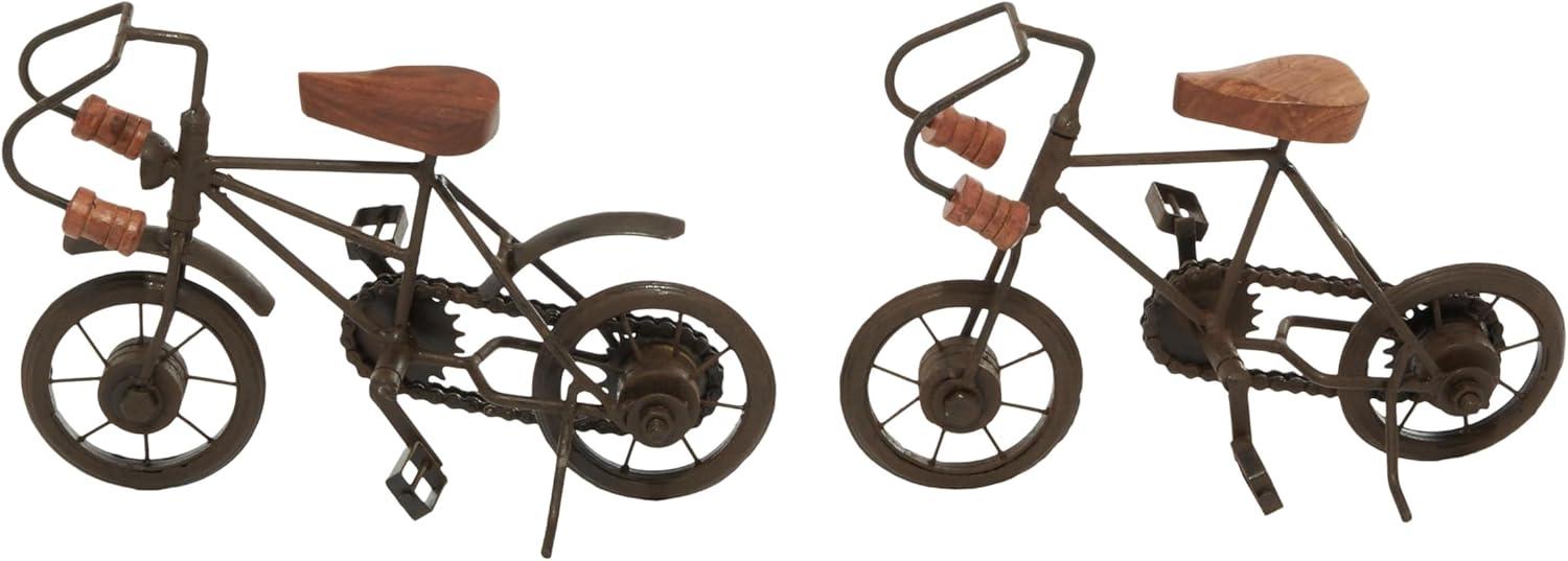 The traditional set of 2 accent statues is welded from iron and has mango wood carved for the seats, blending materials for a robust design. The satin gold home decor figurines are traditional bike sculptures with wood accents, showcasing a refined, classic look. Wipe clean with a dry cloth. Add a dynamic touch to your living room with the bike set of 2 home decor statues. This item ships in 1 carton. Please note that this item is for decorative use only. Iron sculpture makes a great gift for any occasion. Suitable for indoor use only. This item ships fully assembled in one piece. Made in India. This gold colored iron statue comes as a set of 2. Traditional style.