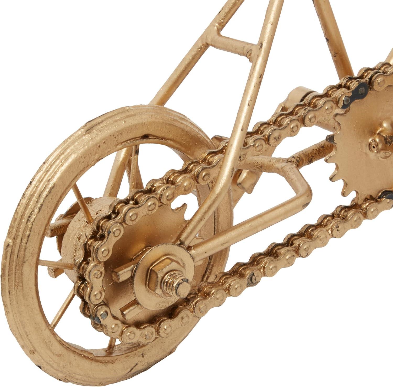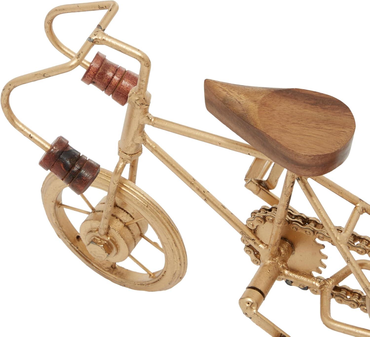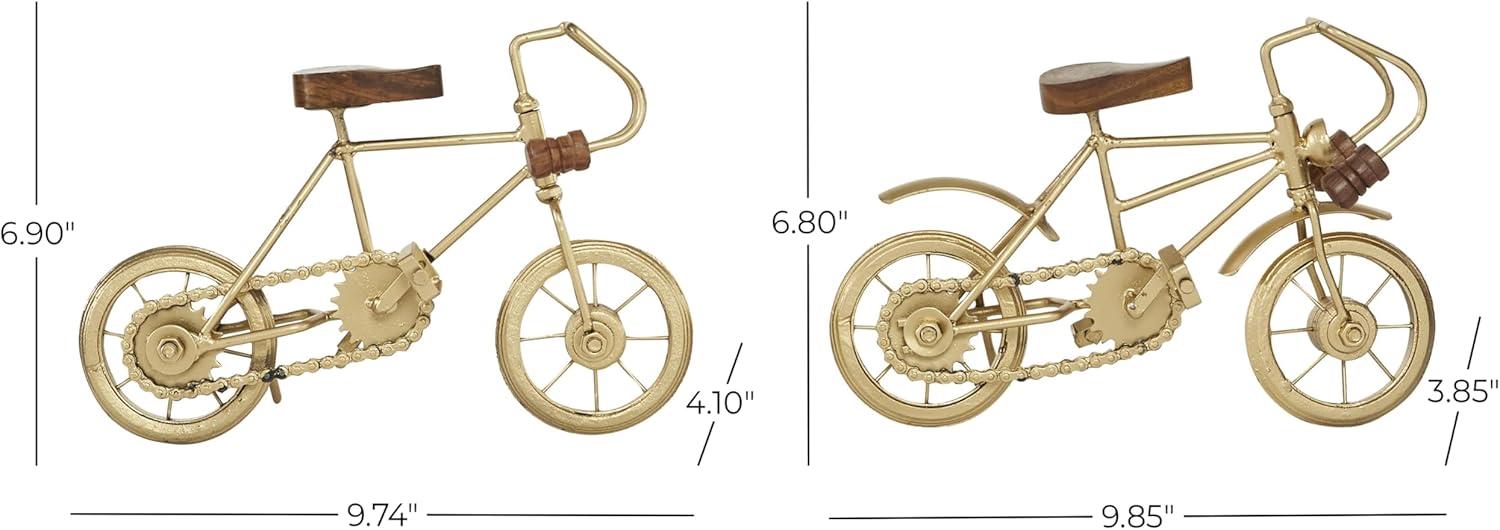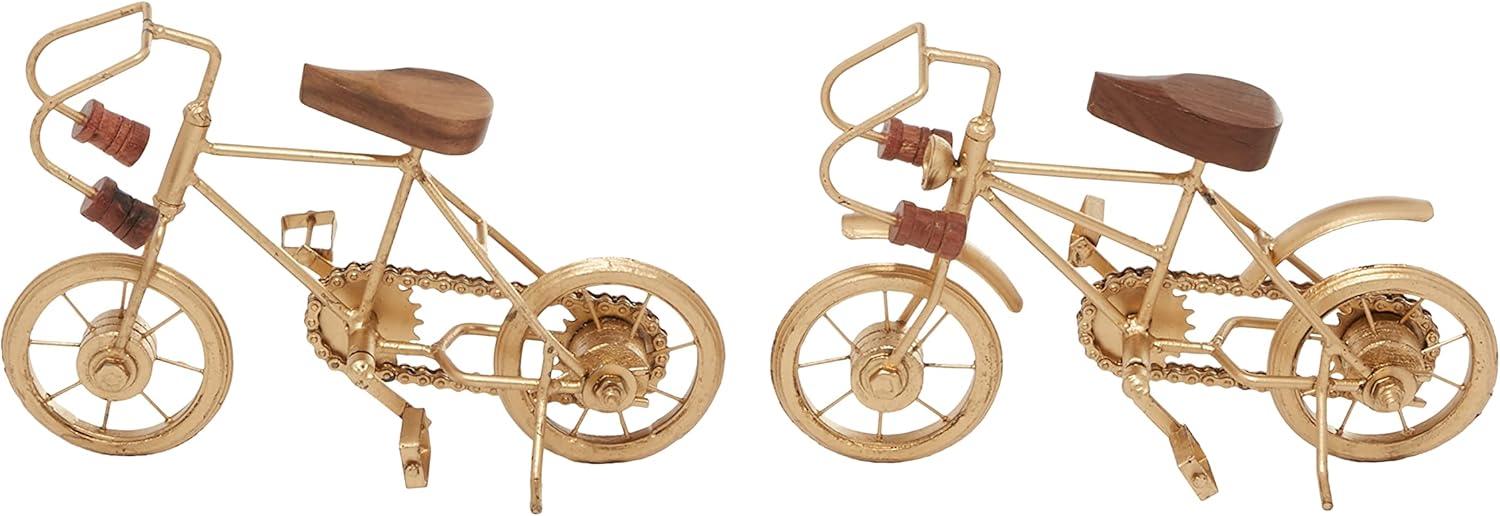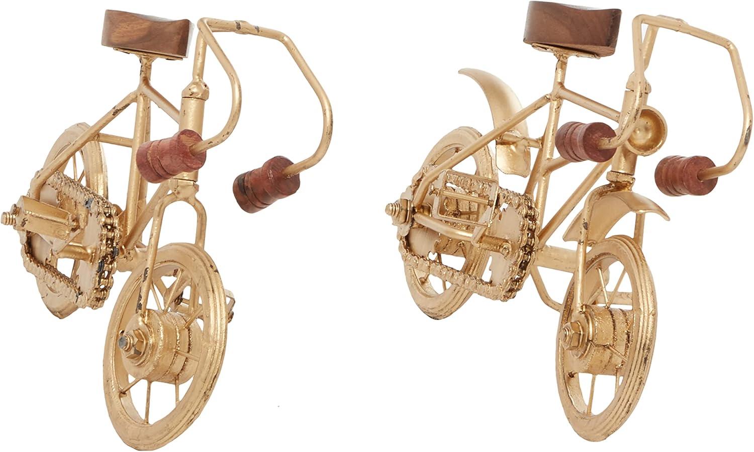 Deco 79 Metal Bike Decorative Sculpture Home Decor Statues with Wood Accents, set of 2 Accent Figurines 10" x 4" x 7", Gold(Gold)
