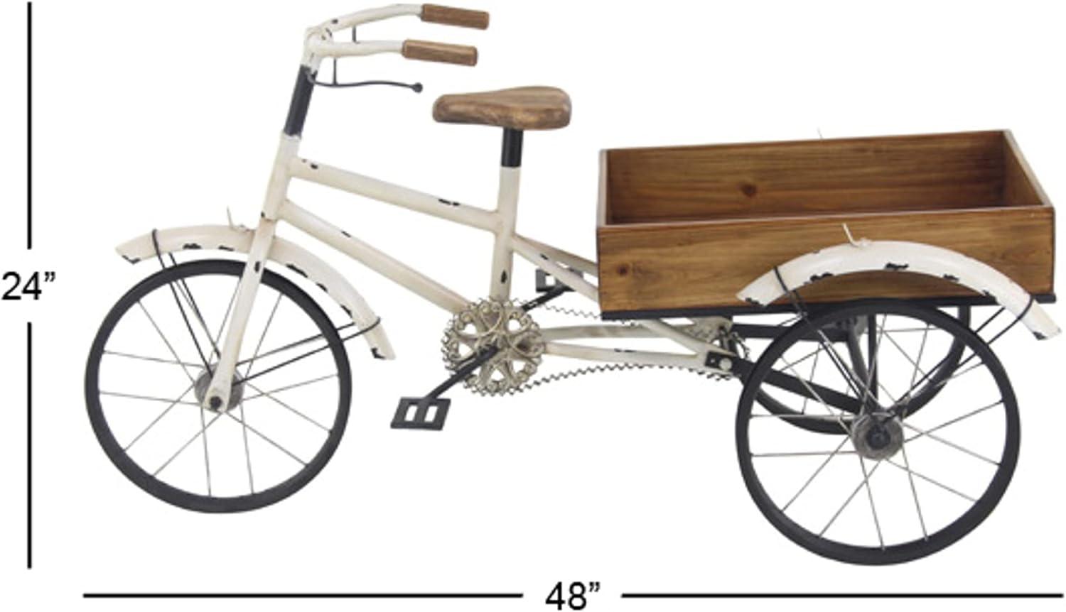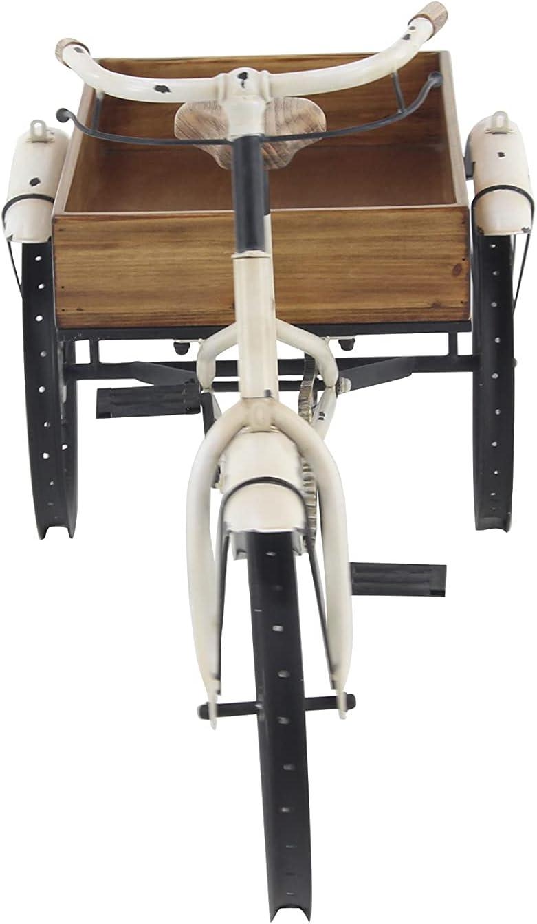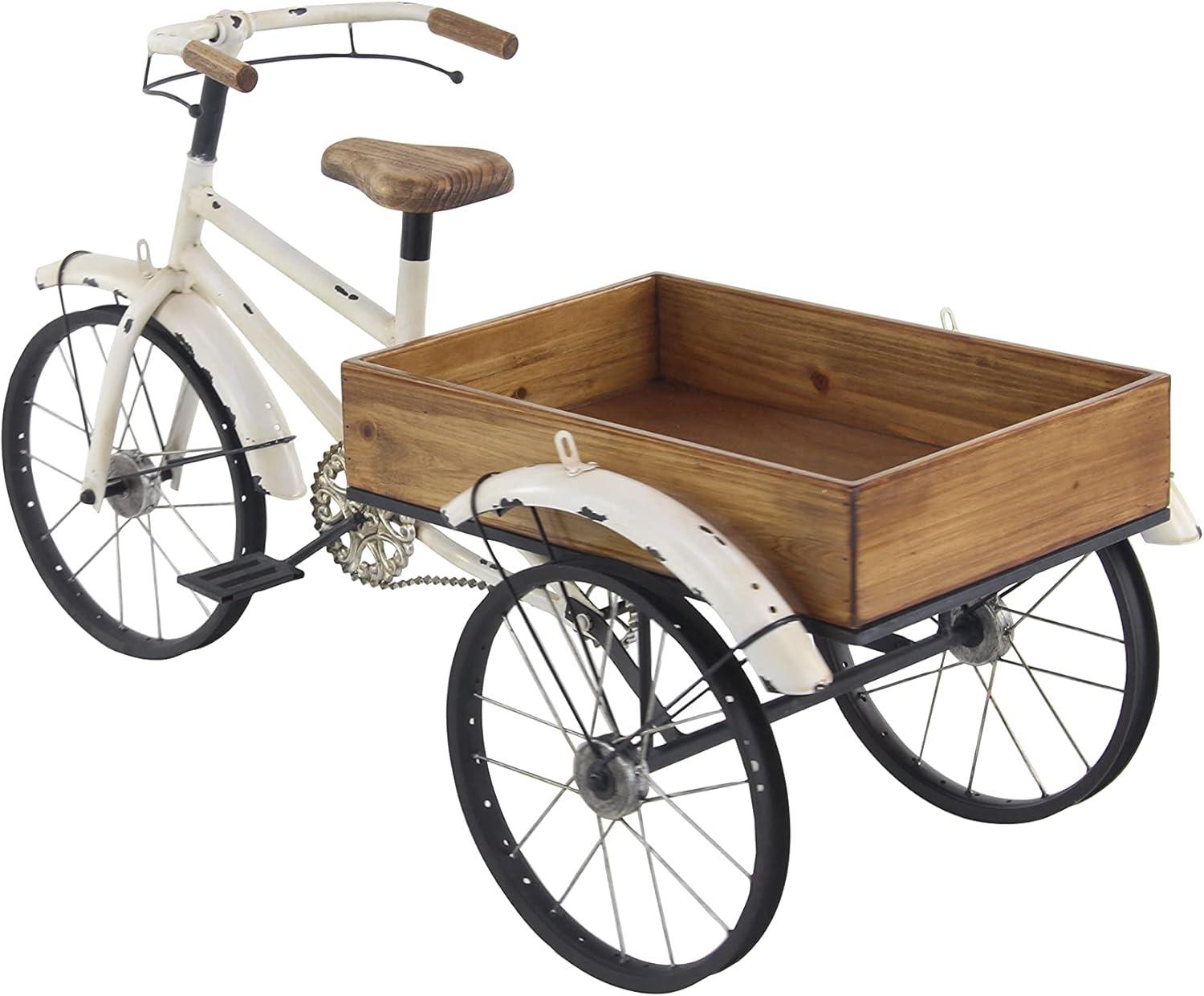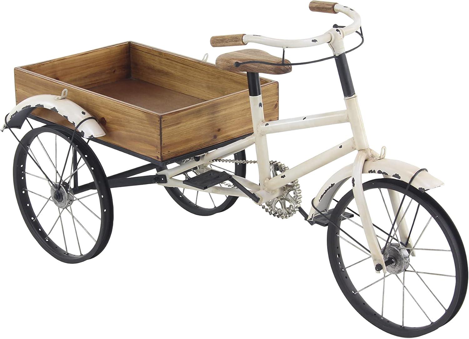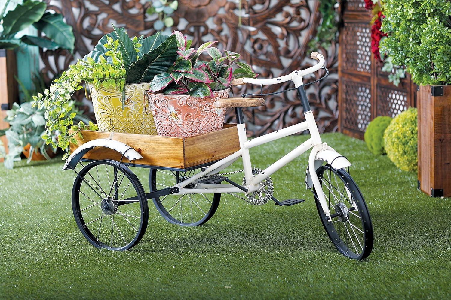 image:imageDeco 79 Metal Bike Indoor Outdoor Plantstand Distressed Indoor Outdoor Scroll 3 Tier Plant Shelf with Fleur De Lis Wheels Plant Stand 36 x 12 x 26 GrayWhite