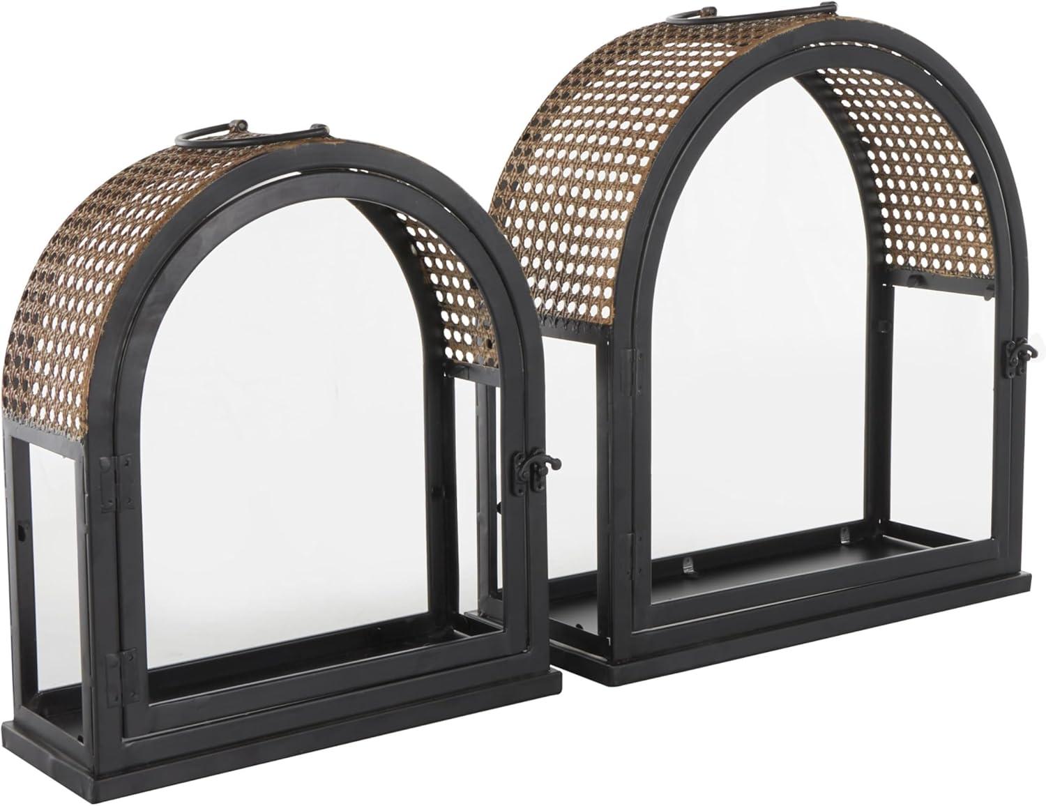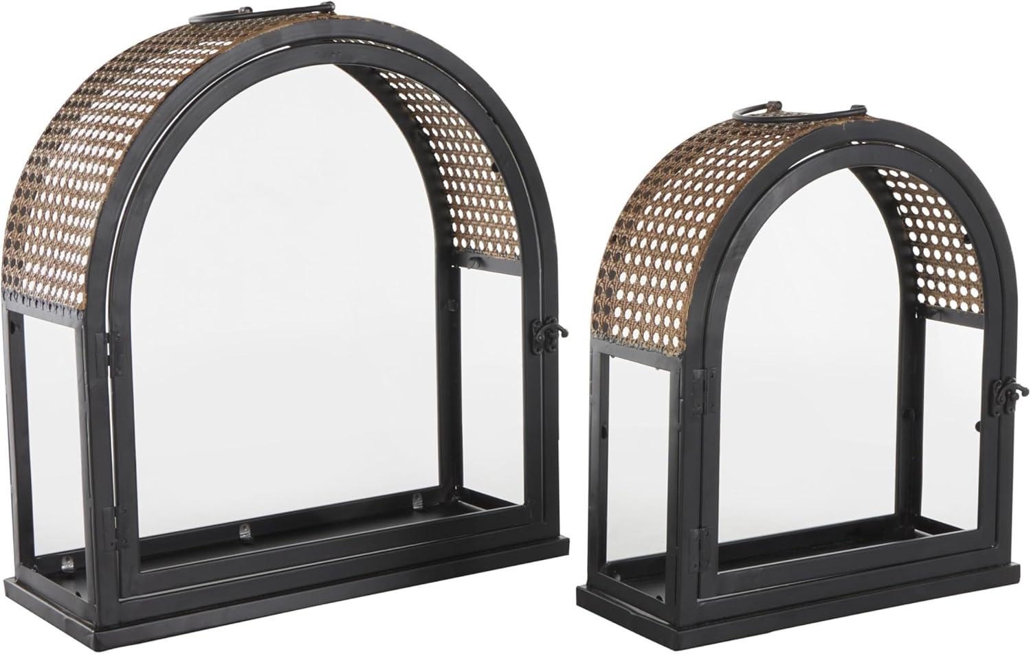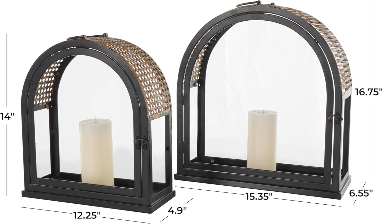 Deco 79 Metal Scroll Distressed Vintage Inspired Ornate Candle Lantern, Set of 2 14″, 10″ H, Brown(14″ 12″H)