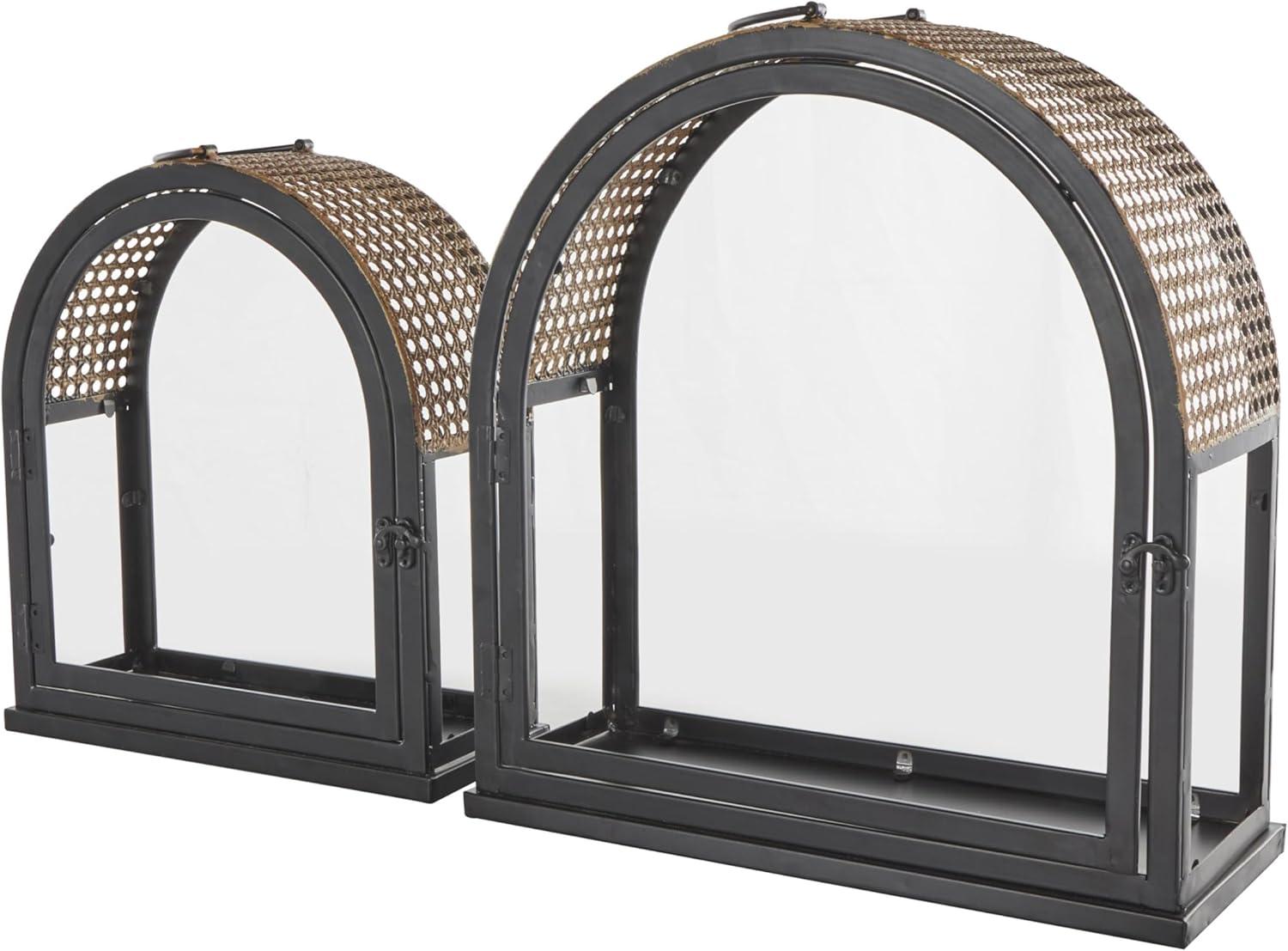 2 PIECES CONVENIENTLY SIZED: Each dark gray metal candle lantern measures 12.3L x 8.8W x 15.45H , 10.1L x 7.25W x 11.2H inches, and collectively weighs 7.885 lbs