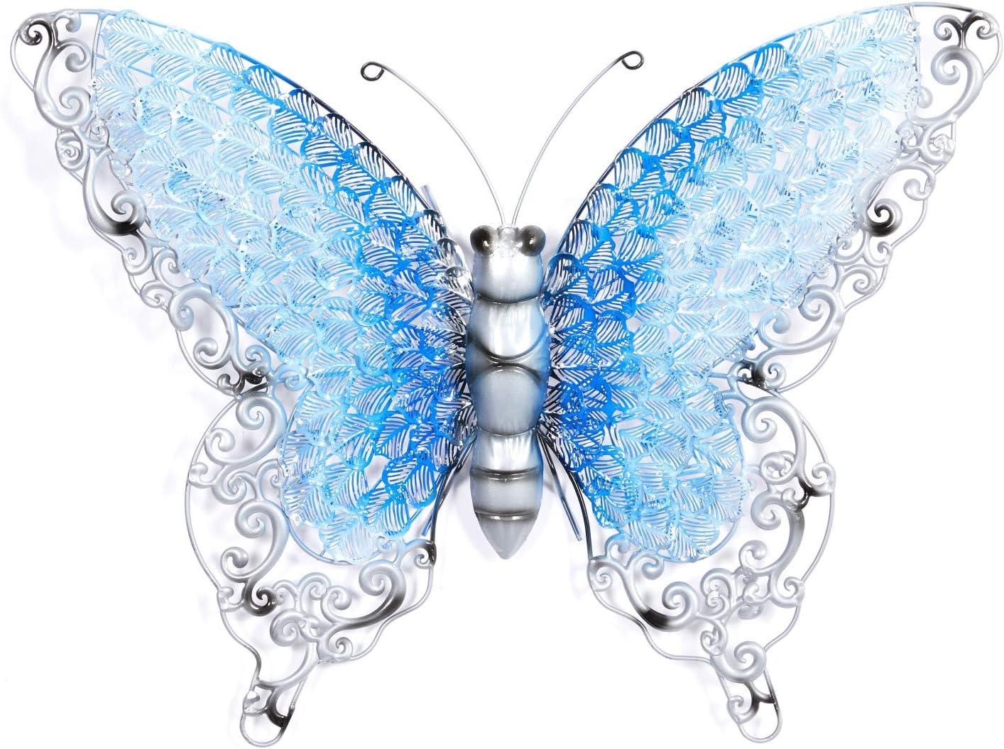 Do You Like Butterflies? You Now Have The Opportunity To Own One Right In Your Place. Get This Adorable Butterfly That Will Add Color And Life To Bare Walls And Make Your Home Glow Like Never Before. Sturdy And Durable In Nature, The Butterfly Features Wide Wings Which Are Artistically Detailed In Black And Blue. The Beautiful Scrollwork On The Rim Of The Wings Adds Grace That Will Make Your Walls Call Out For Attention. Add It To Any Wall Of Your Choice And Your Room Space Is Sure To Look Livelier Than Before. As It Is Made Of Metal, Maintaining It Is An Easy Task; Regular Dusting Will Help You Keep Its Shine And Color Intact. Apart From Homes, This decorative Metal Butterfly Wall Plaque Can Be Added To Commercial Places Too For A Soothing Touch. A Graceful decor To Own, Gift It To Close Ones Who Love Owning decorative Pieces.