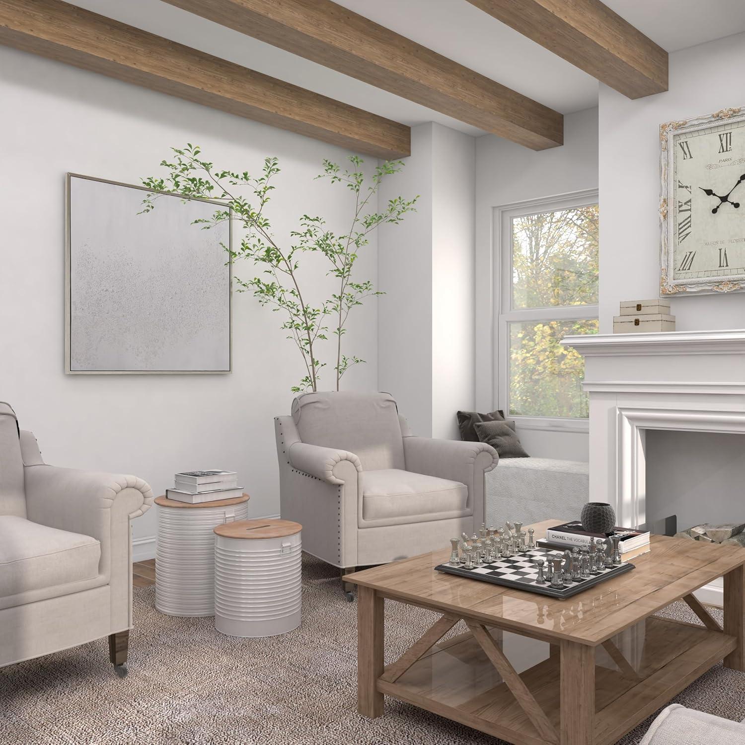 Decorate this farmhouse side table with ceramic potted plants, scented candles and books. This item ships in 1 carton. Suitable for indoor use only. This item ships fully assembled in one piece. Maximum weight limit is 250 lbs. This white colored iron storage ottoman comes as a set of 2. Farmhouse style.