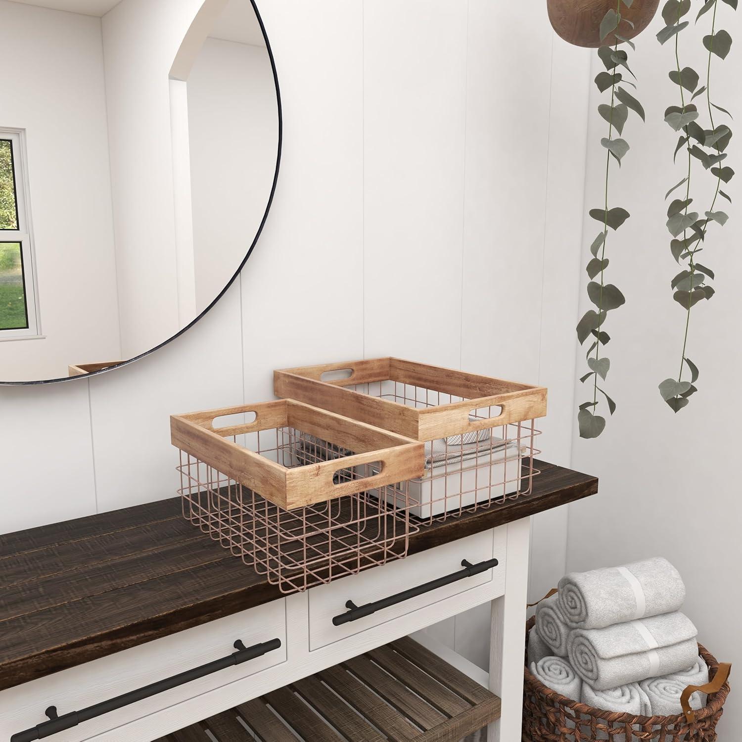 MADE OF CHINESE FIR WOOD AND IRON – High-quality wood and metal construction makes this basket set extra durable