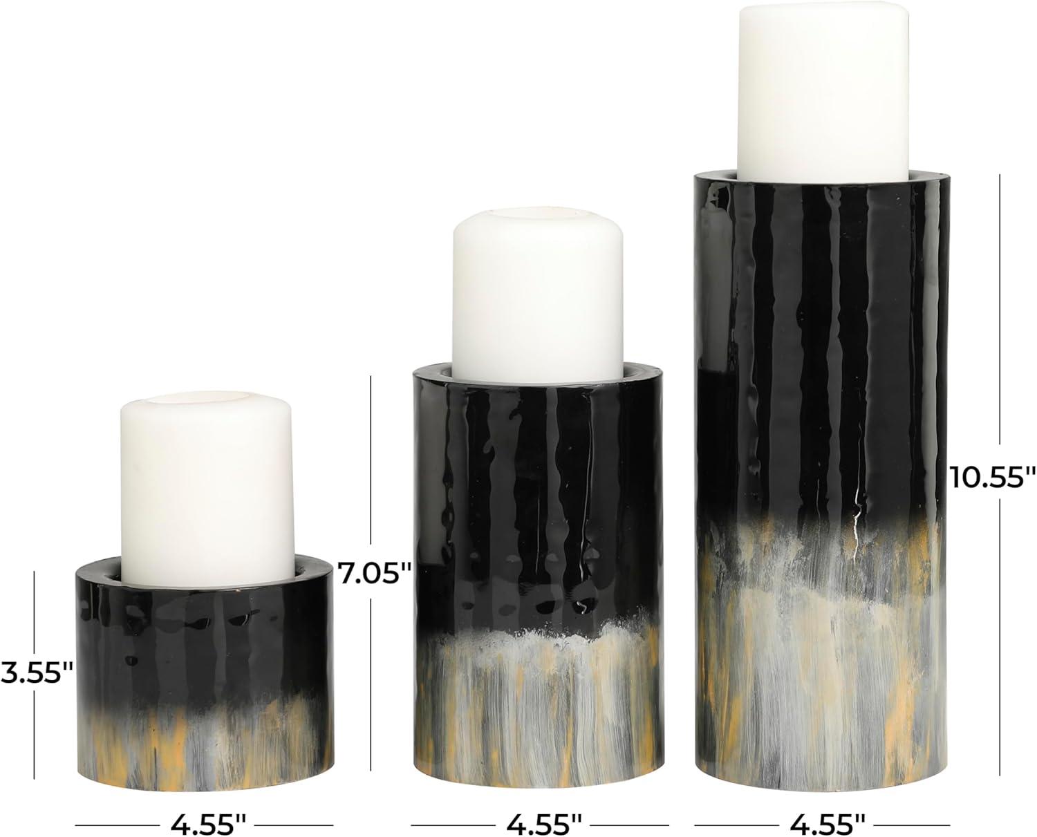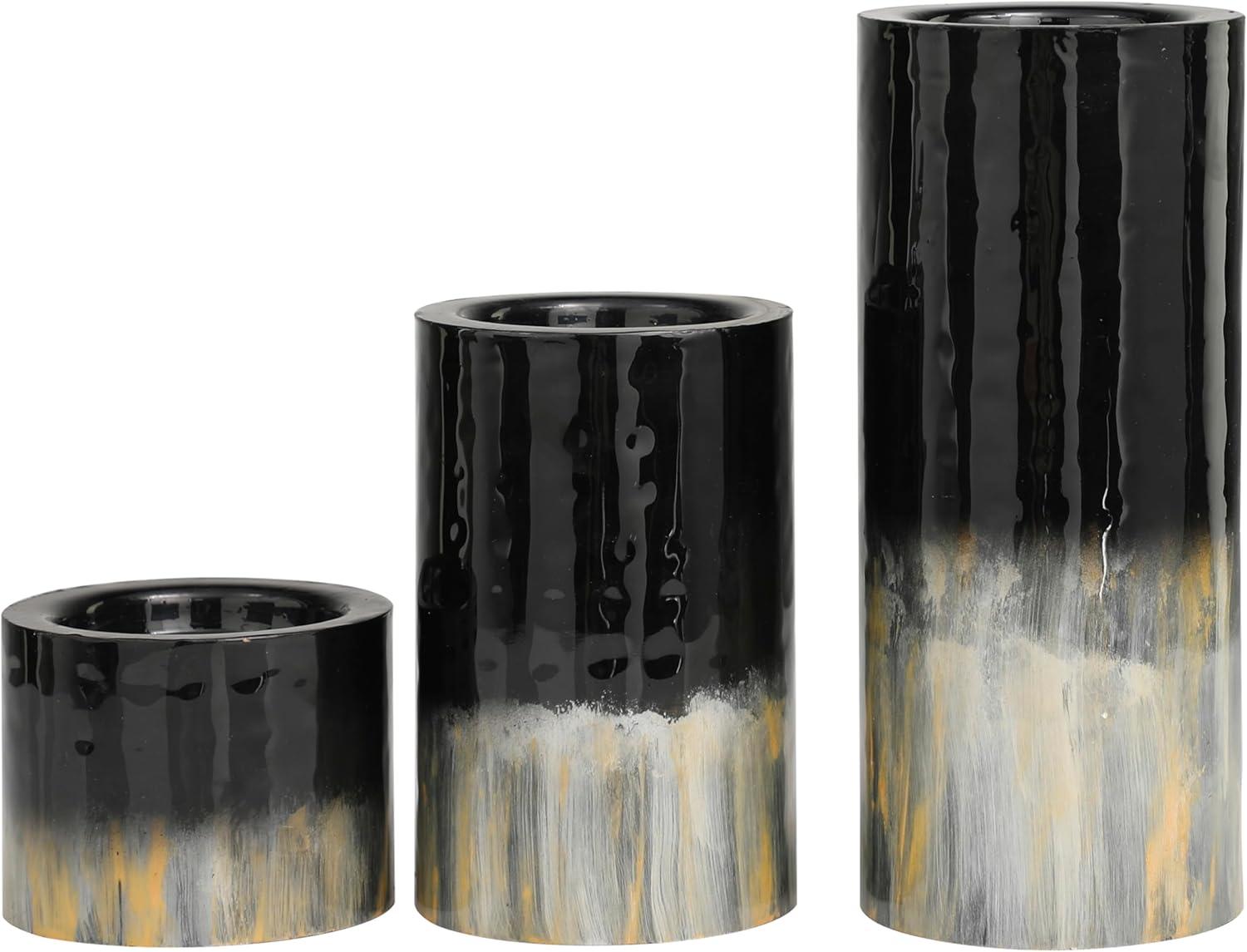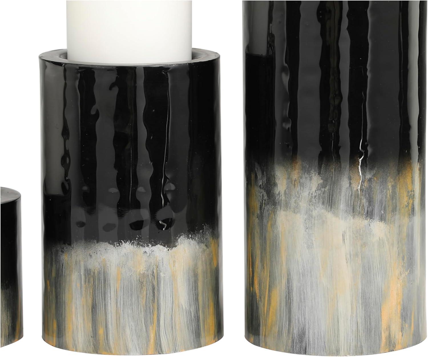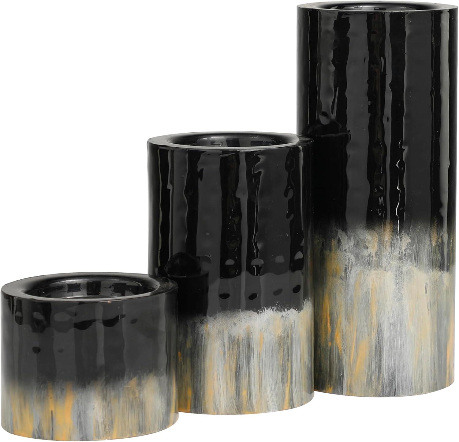 Deco 79 Metal Decorative Candle Holder Colorblock Candle Stand with Gold and Silver Streaks, Set of 3 Candlestick Holder 11", 7", 4" H, Black
