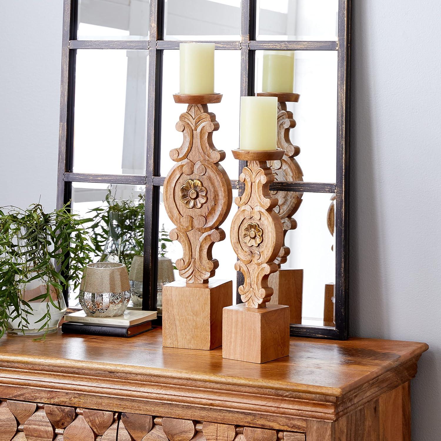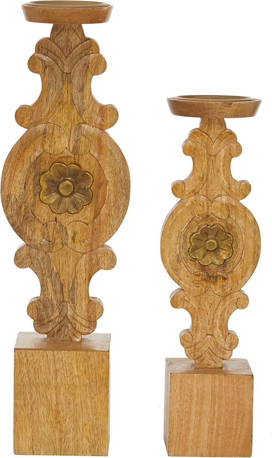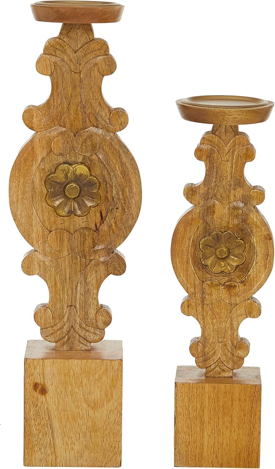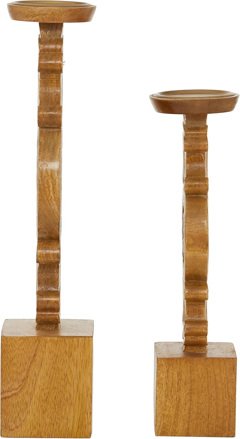 Deco 79 Metal Decorative Candle Holder Tapered Candle Stand with Rectangle Base, Set of 2 Candlestick Holder 10″,9″ H, Gold(Brown)