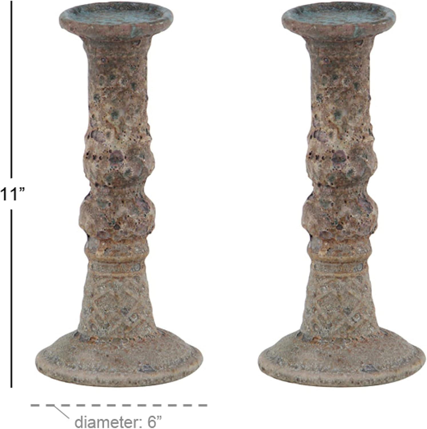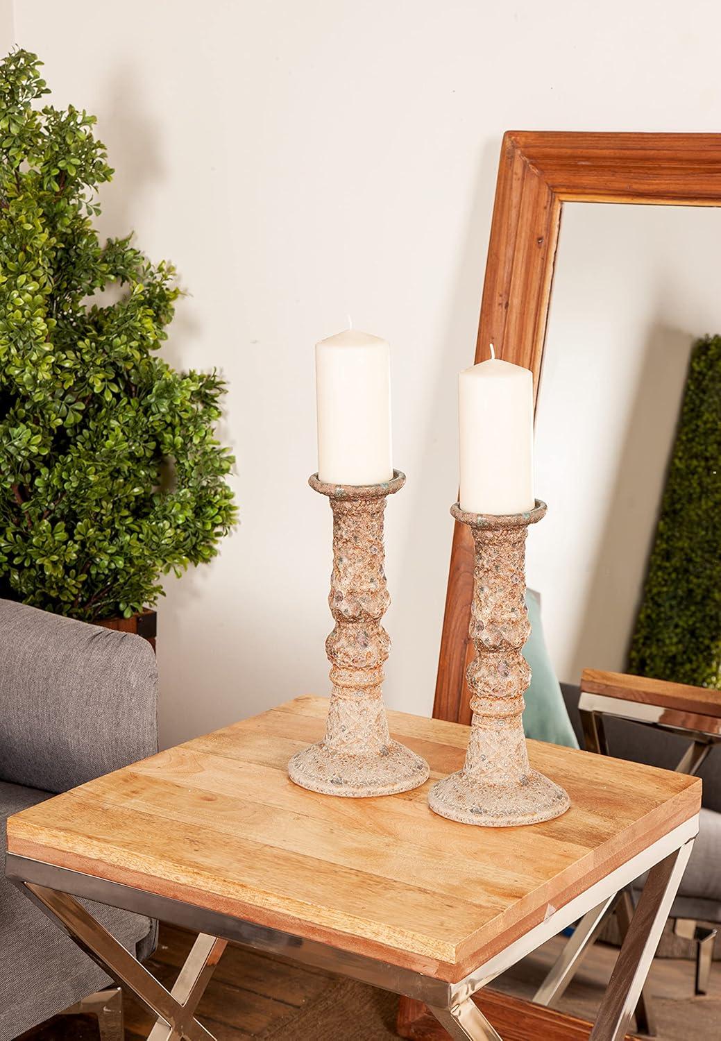 imageDeco 79 Metal Decorative Candle Holder Tapered Candle Stand with Rectangle Base Set of 2 Candlestick Holder 10quot9quot H GoldBrown