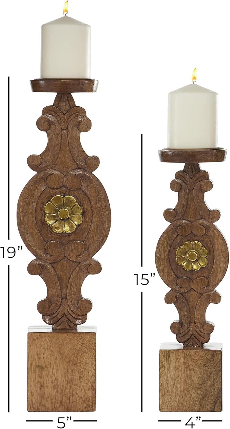 Deco 79 Metal Decorative Candle Holder Tapered Candle Stand with Rectangle Base, Set of 2 Candlestick Holder 10",9" H, Gold(Brown)