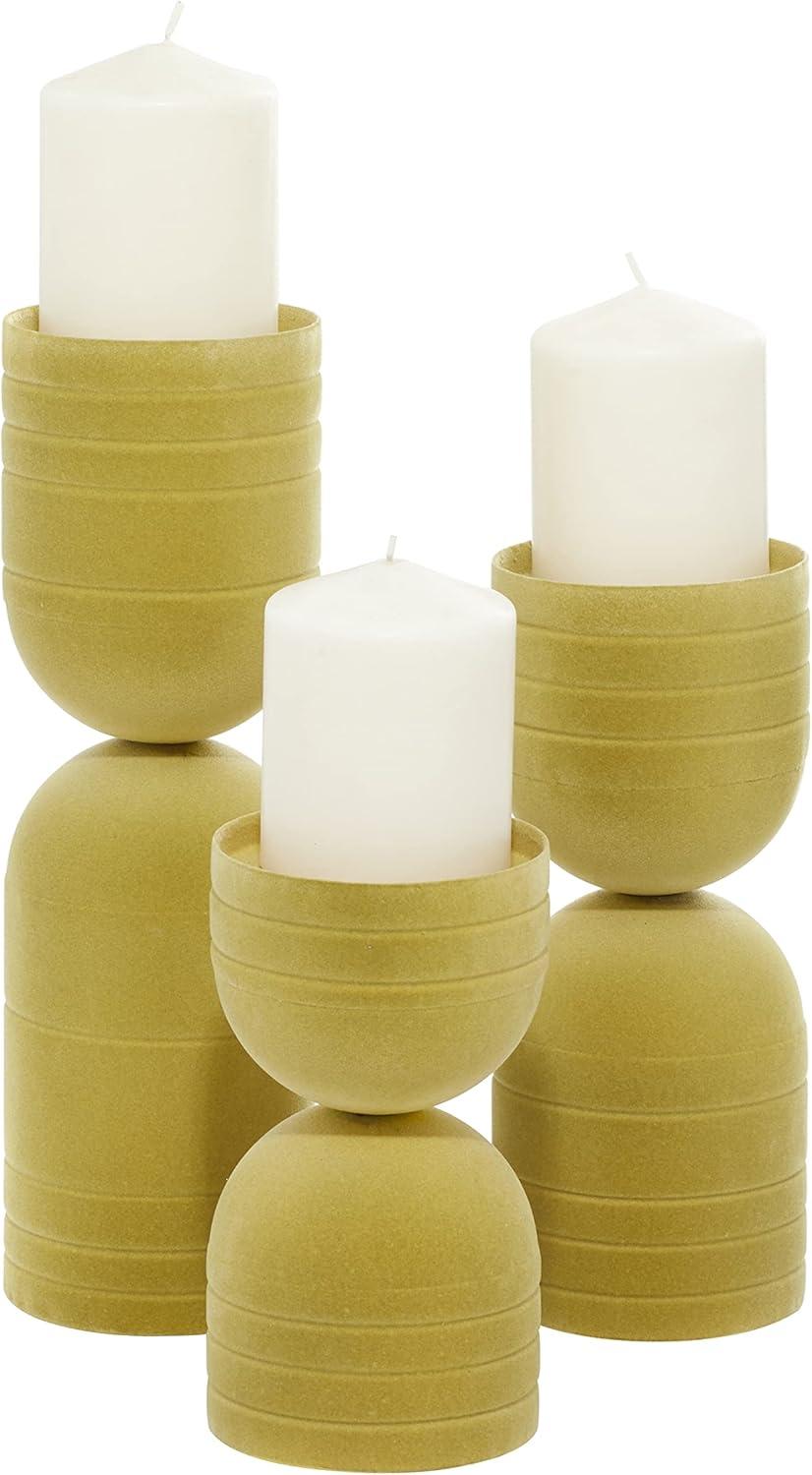 Deco 79 Metal Decorative Candle Holder Tapered Candle Stand with Rectangle Base, Set of 2 Candlestick Holder 10″,9″ H, Gold(Yellow)