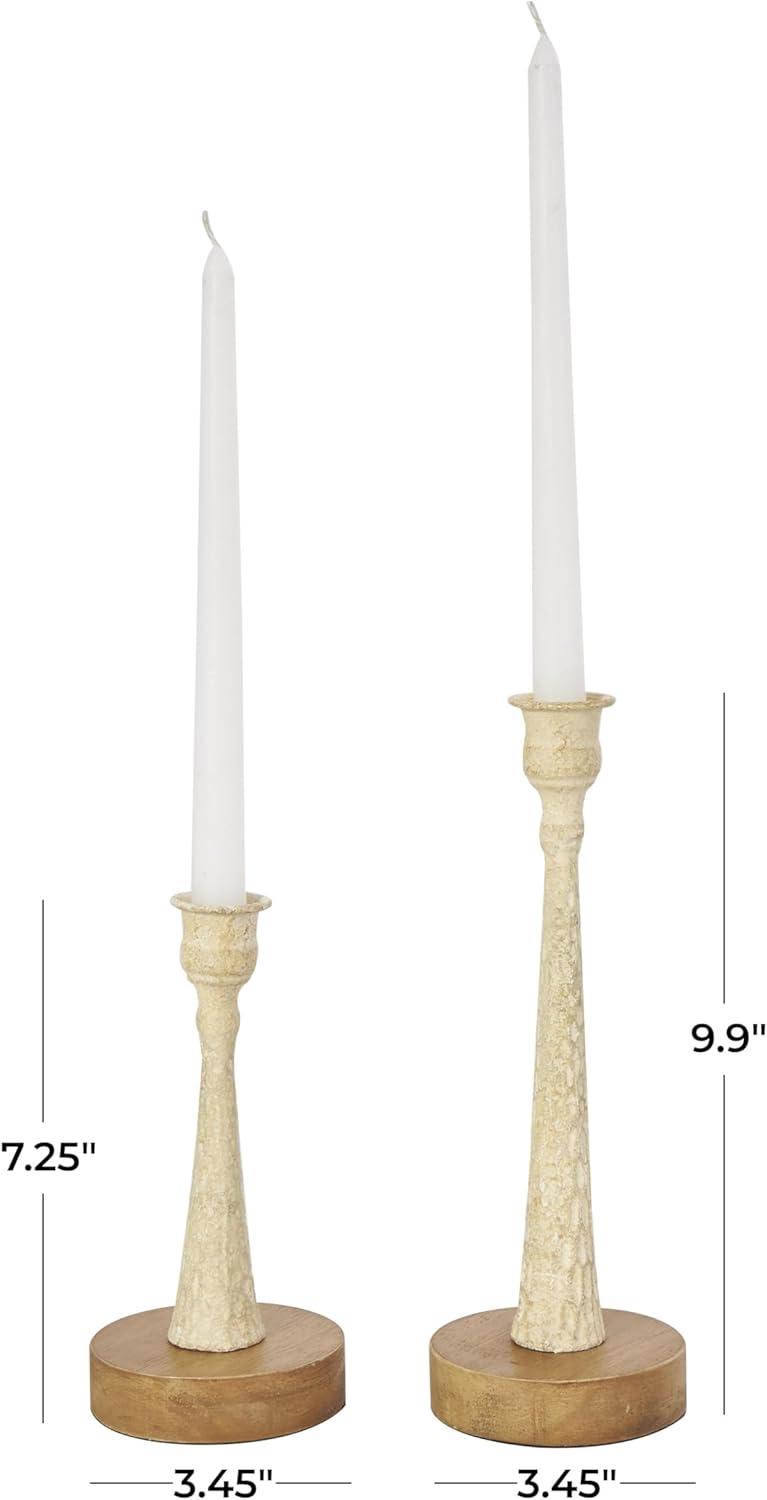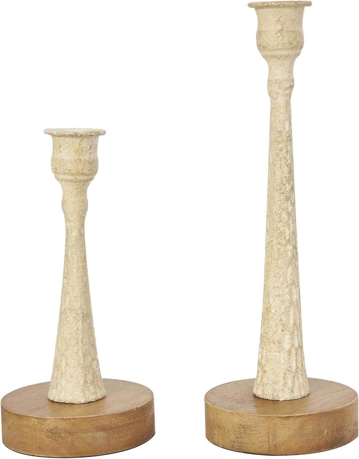 LIGHT BLUE AND BROWN CANDLE HOLDER FOR CENTERPIECE: Asymmetrical candle stand holder set features a light blue color with a textured finish, cream tones, and brown bases, adding a touch of bohemian elegance to your space