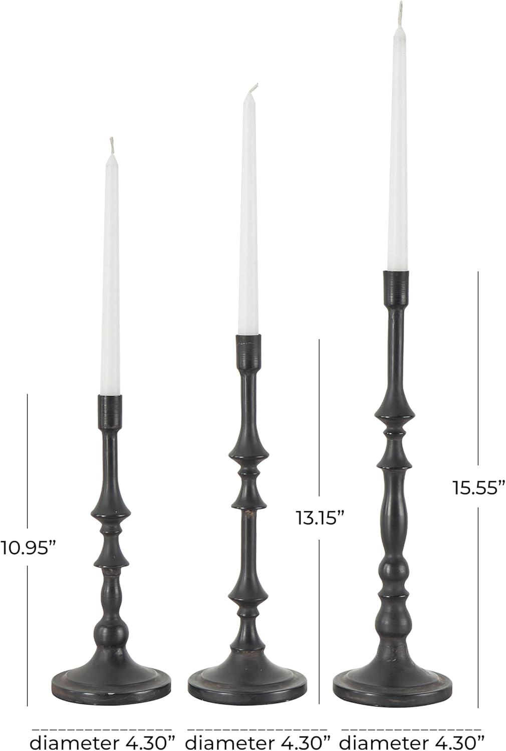 Deco 79 Metal Decorative Candle Holder Turned Style Candle Stand, Set of 3 Candlestick Holder 16", 13", 11" H, Black(Black)