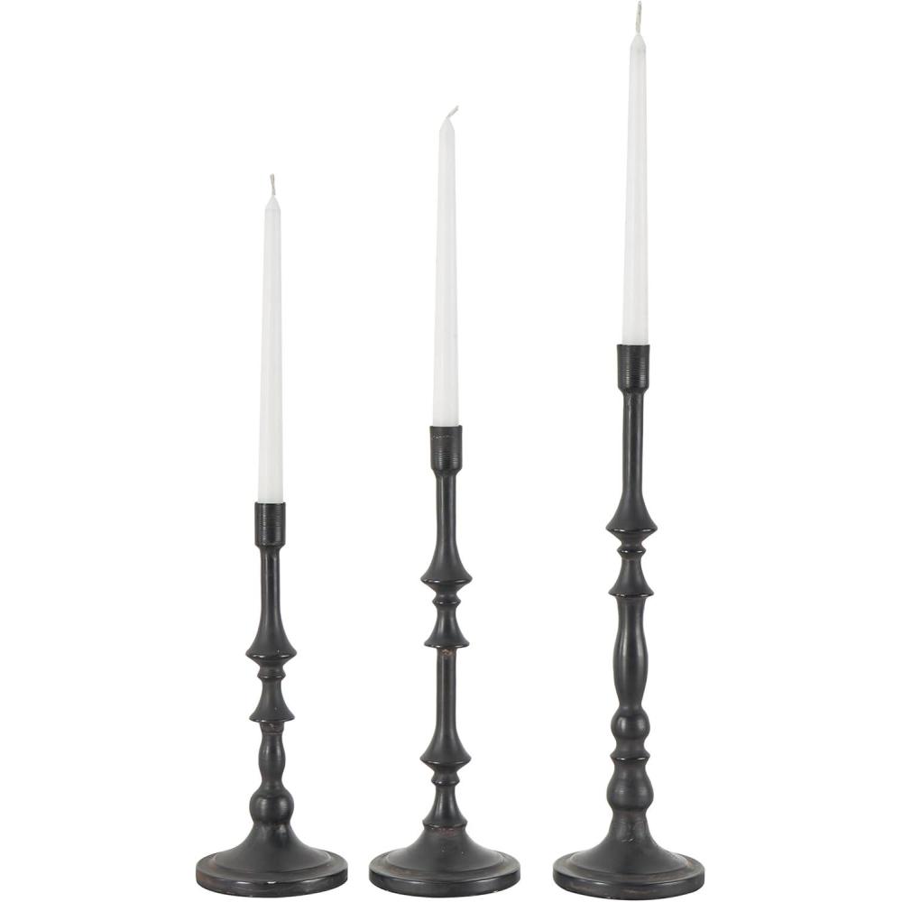 Deco 79 Metal Decorative Candle Holder Turned Style Candle Stand, Set of 3 Candlestick Holder 16″, 13″, 11″ H, Black(Black)