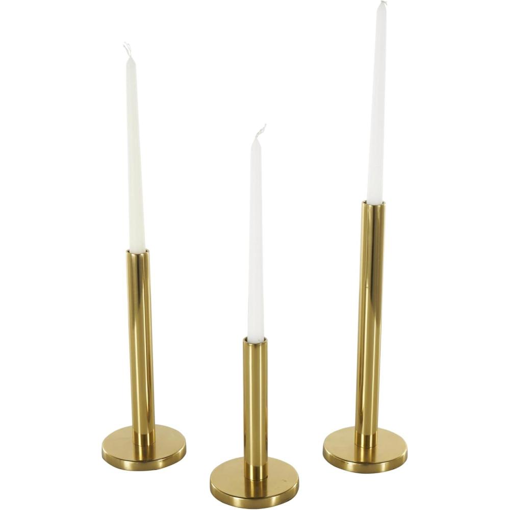 This traditional set of 3 candle holders for home decor is welded with iron, ensuring stability and longevity while securely holding your candles. Add a modern touch to a classic aesthetic with this matte black candle holders for centerpiece, featuring a round shape with varying heights and traditional turned style details. Wipe clean with a dry cloth. Style this black set of 3 candle stands with tall taper candles and place them on a dining table or mantel to create a warm and inviting ambiance. Designed with felt or rubber stoppers at the base that prevent scratching furniture and table tops, as well as sliding around. Can hold 3 taper candles, not included. This item ships in 1 carton. Iron candle holder makes a great gift for any occasion. Suitable for indoor use only. This item ships fully assembled in one piece. This black colored iron candlestick holder comes as a set of 3. Traditional style.