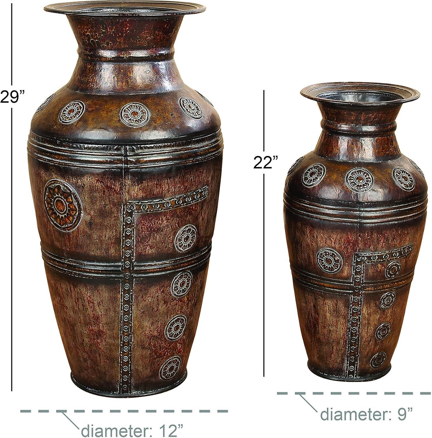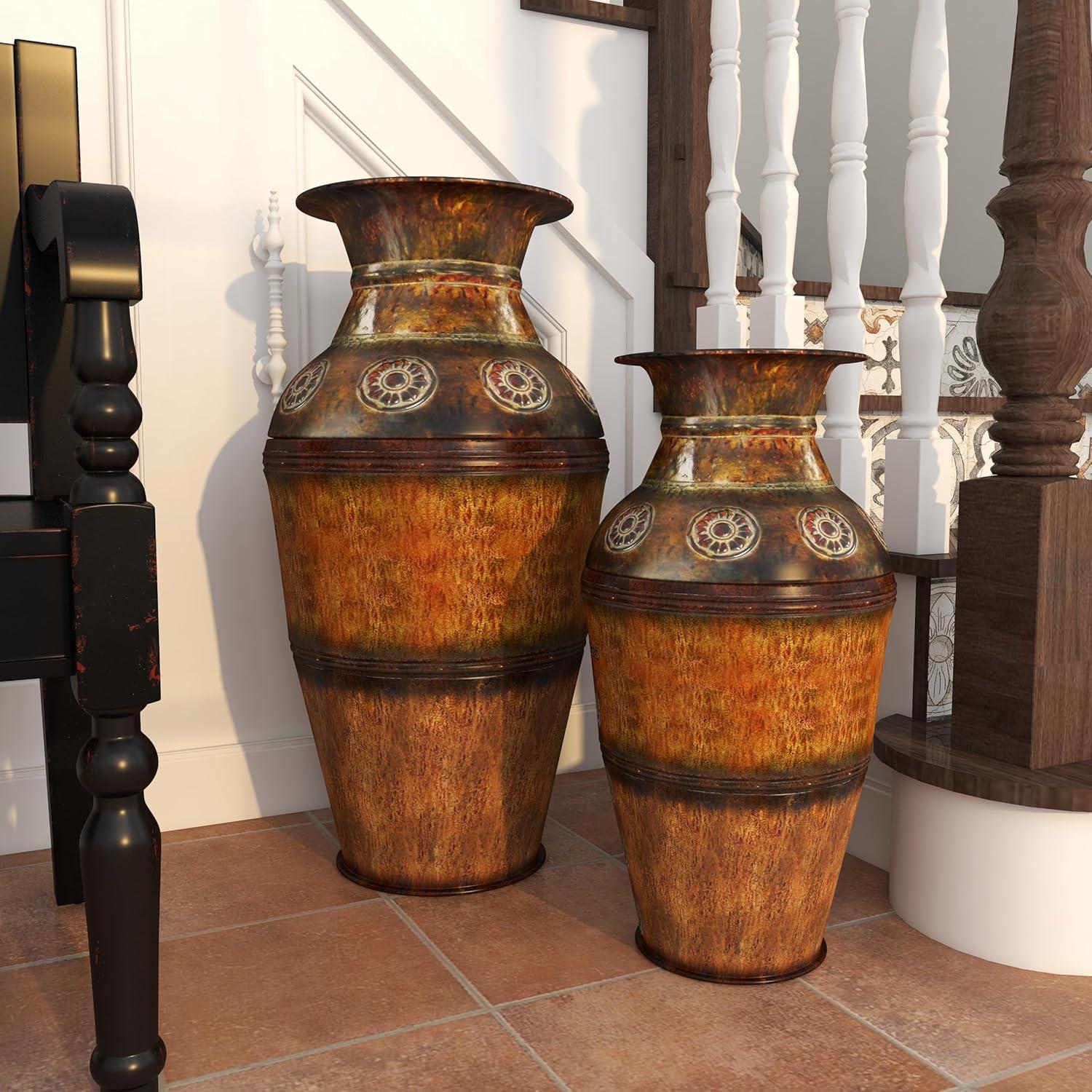 Classic Design – Each vase features an amphora-shaped body with raised bands and floral details, complementing your existing rustic-themed decor