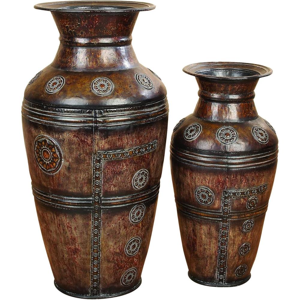 The small spaces in office and home filled with nice looking sculptures support the interior decoration in great way. Stores dealing in home decor and furnishing products, offer wide range of small sized table decor accents. 75714 Metal VASE Set of 2 with broad flange shaped neck is one of those.