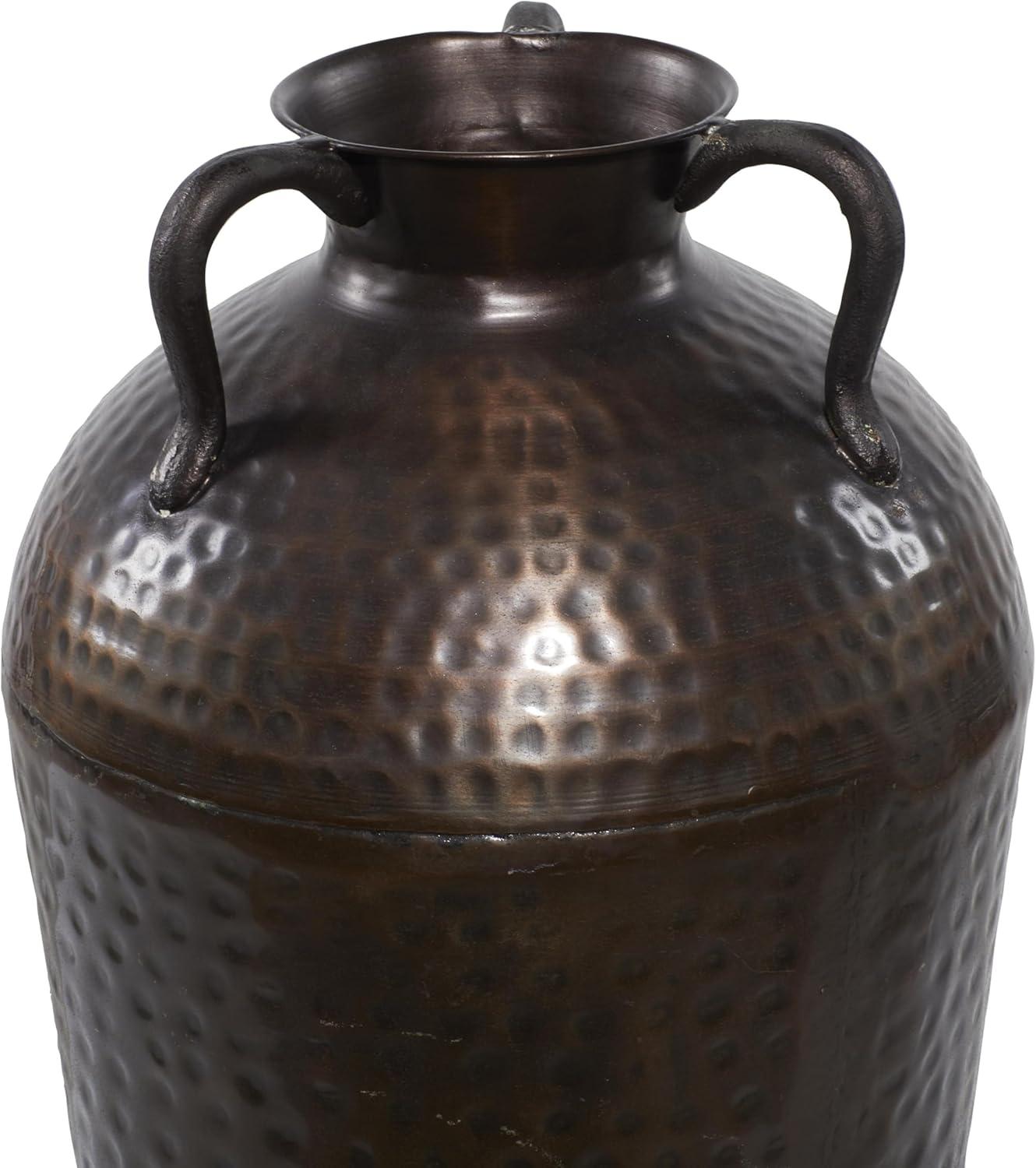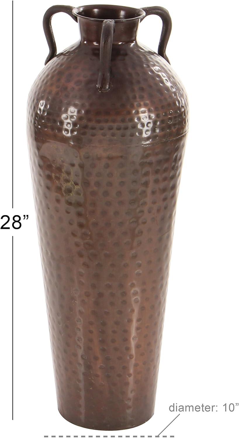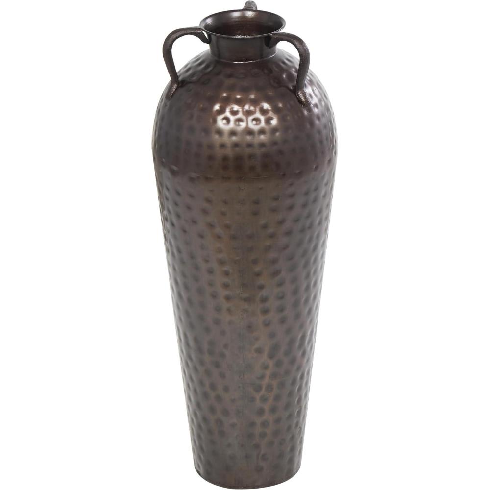 Endow your home a contemporary feel with this metal flower vase with an exquisite look. Polished with a dark brown color finish perfectly, this artistic metal flower vase can be kept adjacent to the light colored walls of your living area to offer an apt contrast. Perfect to blend in with both indoor and outdoor settings, it will enhance the decor of home or office. Place it in your garden area or on steps and be rest assured to win accolades for your taste. This metal flower vase offers a perfect blend of conventional look to your otherwise modern decor. Constructed with a sturdy metal to withstand extreme conditions, this metal flower vase is suitable both for indoor and outdoor usage. It is resistant to corrosion and will last the rigors of the adverse weather conditions