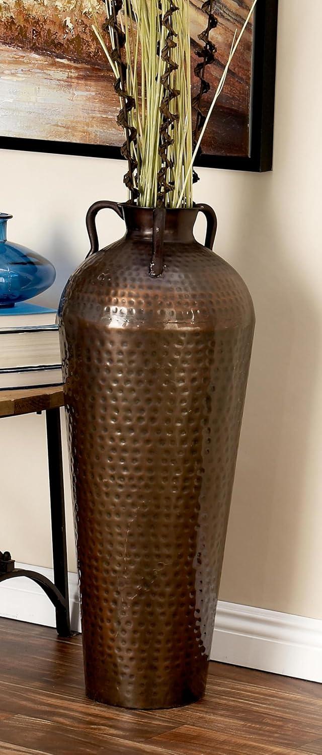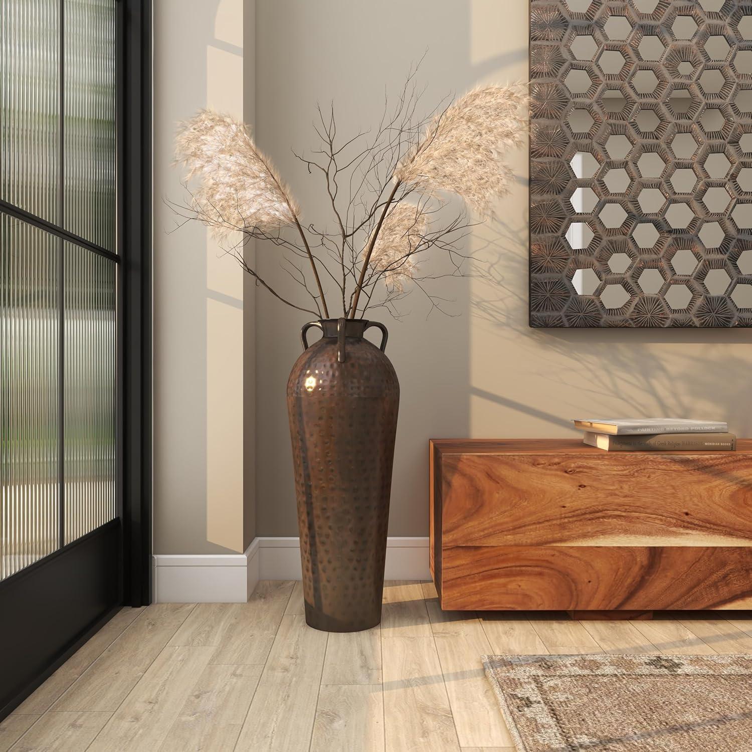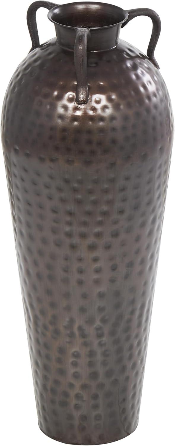 Endow your home a contemporary feel with this metal flower vase with an exquisite look. Polished with a dark brown color finish perfectly, this artistic metal flower vase can be kept adjacent to the light colored walls of your living area to offer an apt contrast. Perfect to blend in with both indoor and outdoor settings, it will enhance the decor of home or office. Place it in your garden area or on steps and be rest assured to win accolades for your taste. This metal flower vase offers a perfect blend of conventional look to your otherwise modern decor. Constructed with a sturdy metal to withstand extreme conditions, this metal flower vase is suitable both for indoor and outdoor usage. It is resistant to corrosion and will last the rigors of the adverse weather conditions