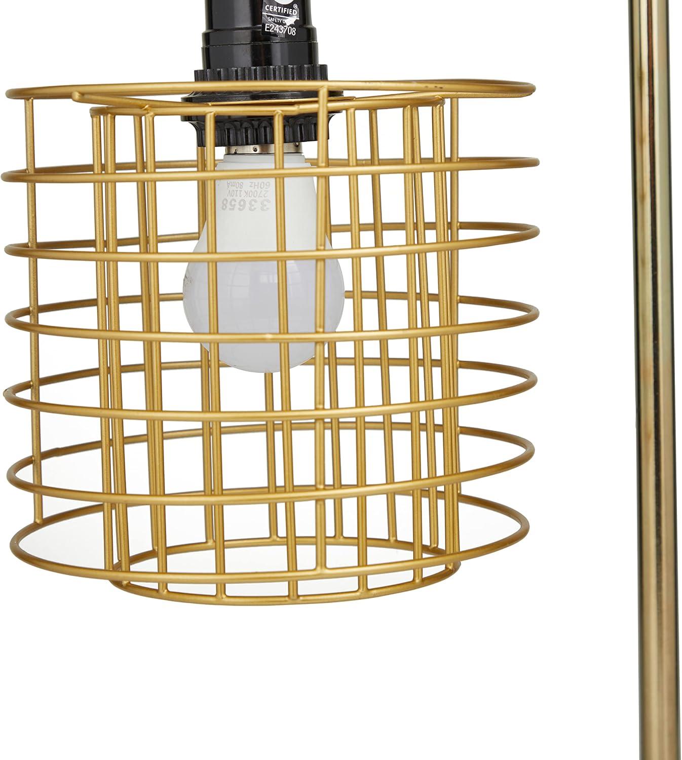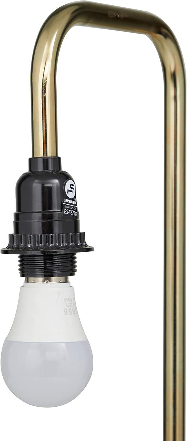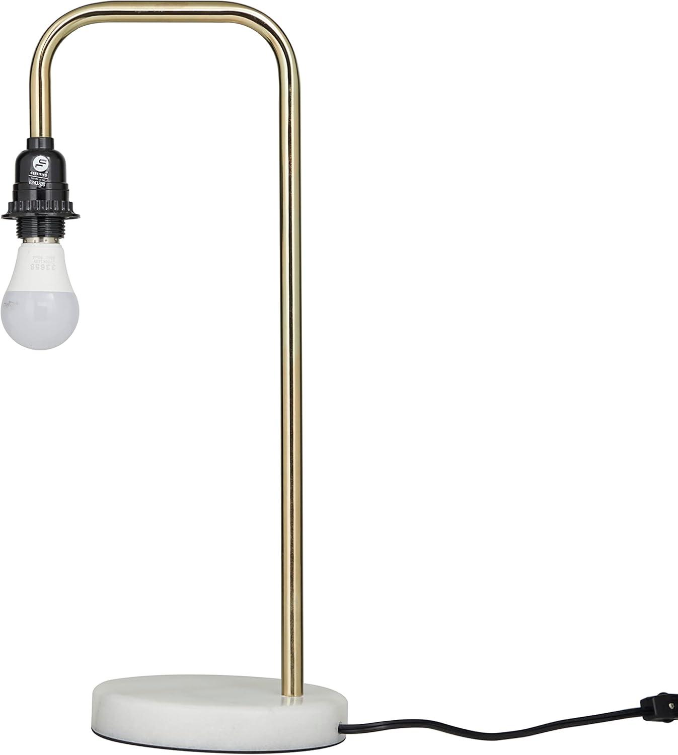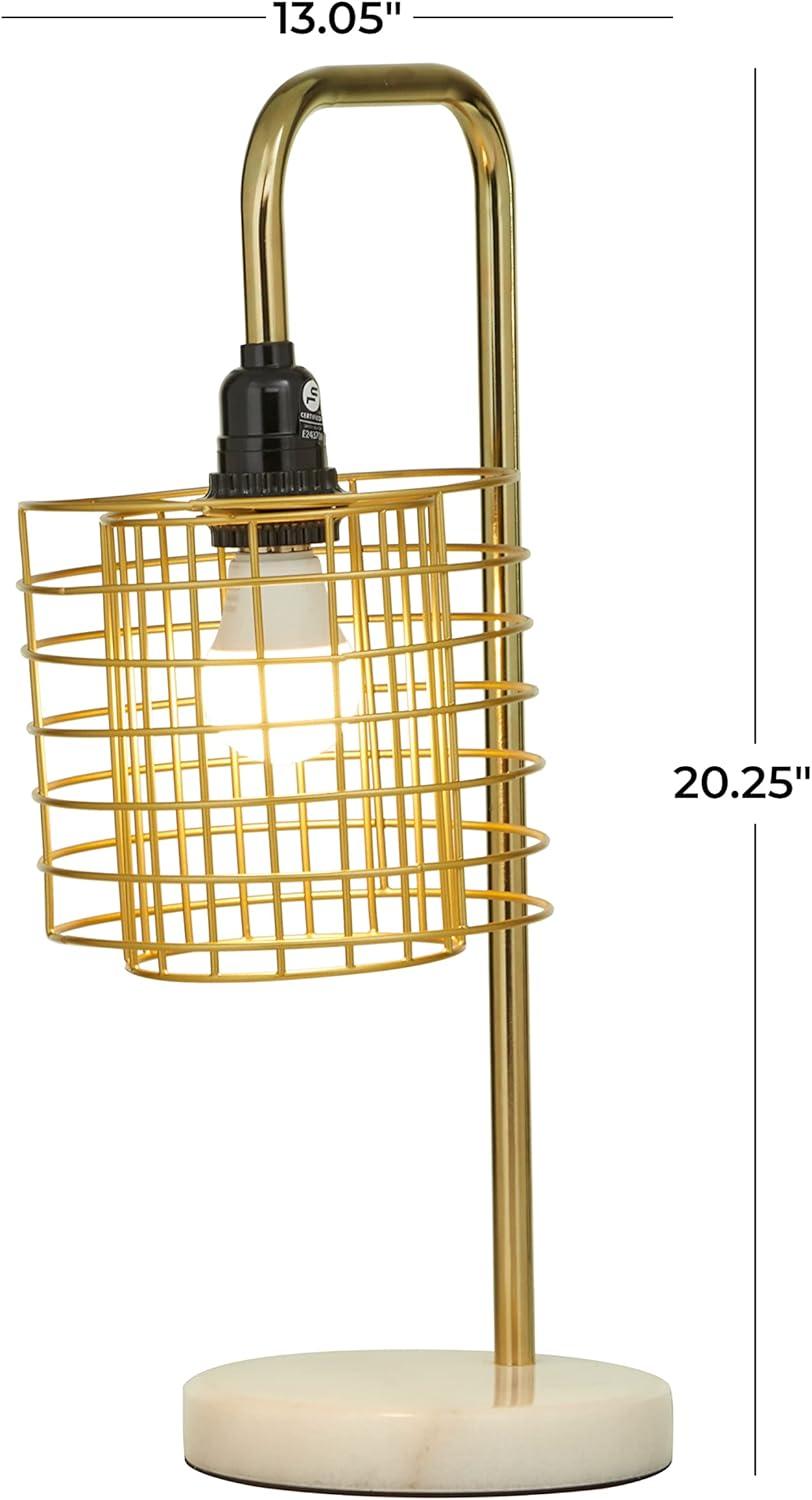 This eye catching lamp makes a playful addition to your surface space and beautifully illuminate its surrounding area. Make a statement with this unique lamp on mantle, console table or in any living space. Give your industrial style of home a chic illumination with this uniquely designed table lamp. Includes 1 60W Type A E26/Medium (Standard) bulb. This item ships in 1 carton. Comes with a 73″ cord length. Metal desk lamp makes a great gift for any occasion. Suitable for indoor use only. This item ships fully assembled in one piece. Desk lamp comes with a gold drum shaped shade that measures 7 x 7 x 7 inches. Includes a rotary switch. Marble is a product of nature and no two pieces are exactly alike. It is prone to variations in color and/or patterns in the material that add to the beauty and charm of the piece.. This is a single gold colored accent lamp. Industrial style.
