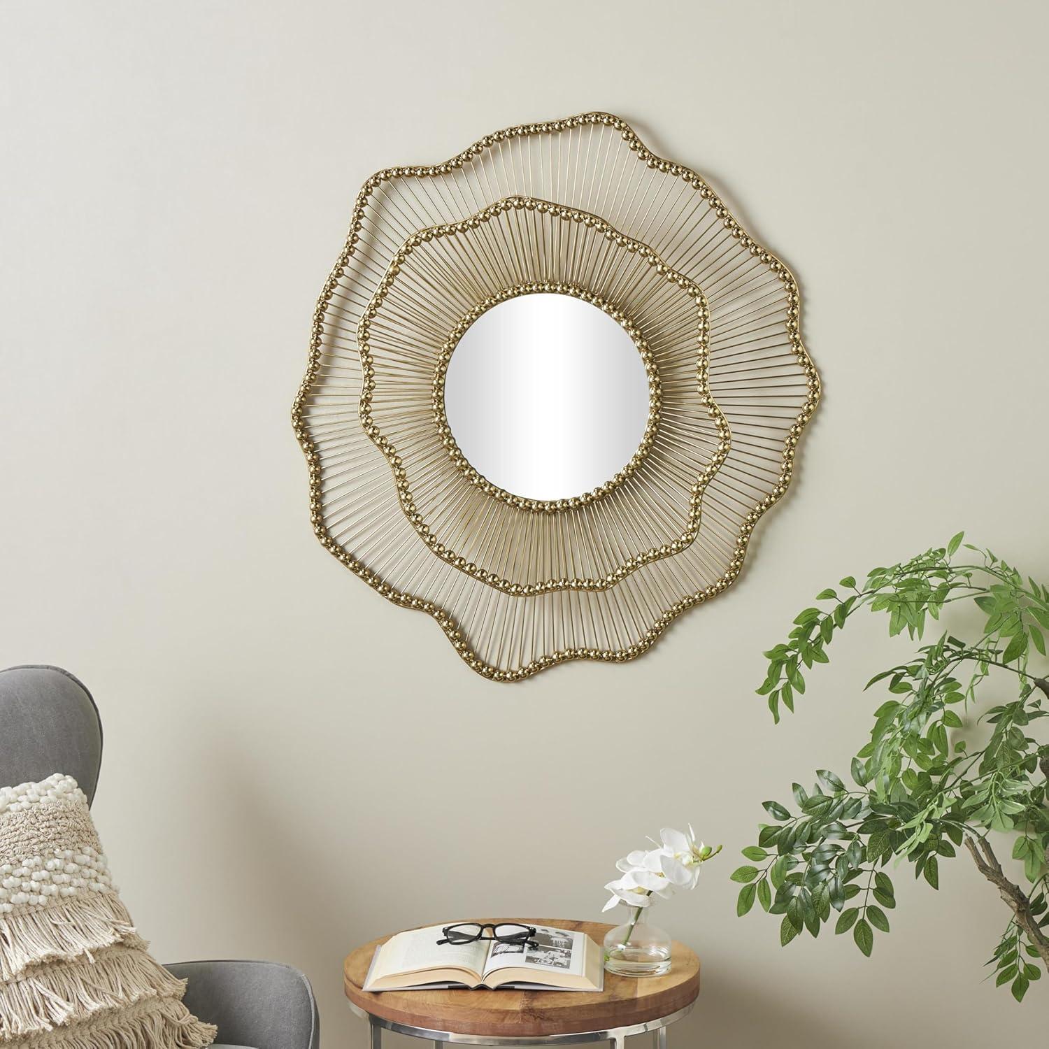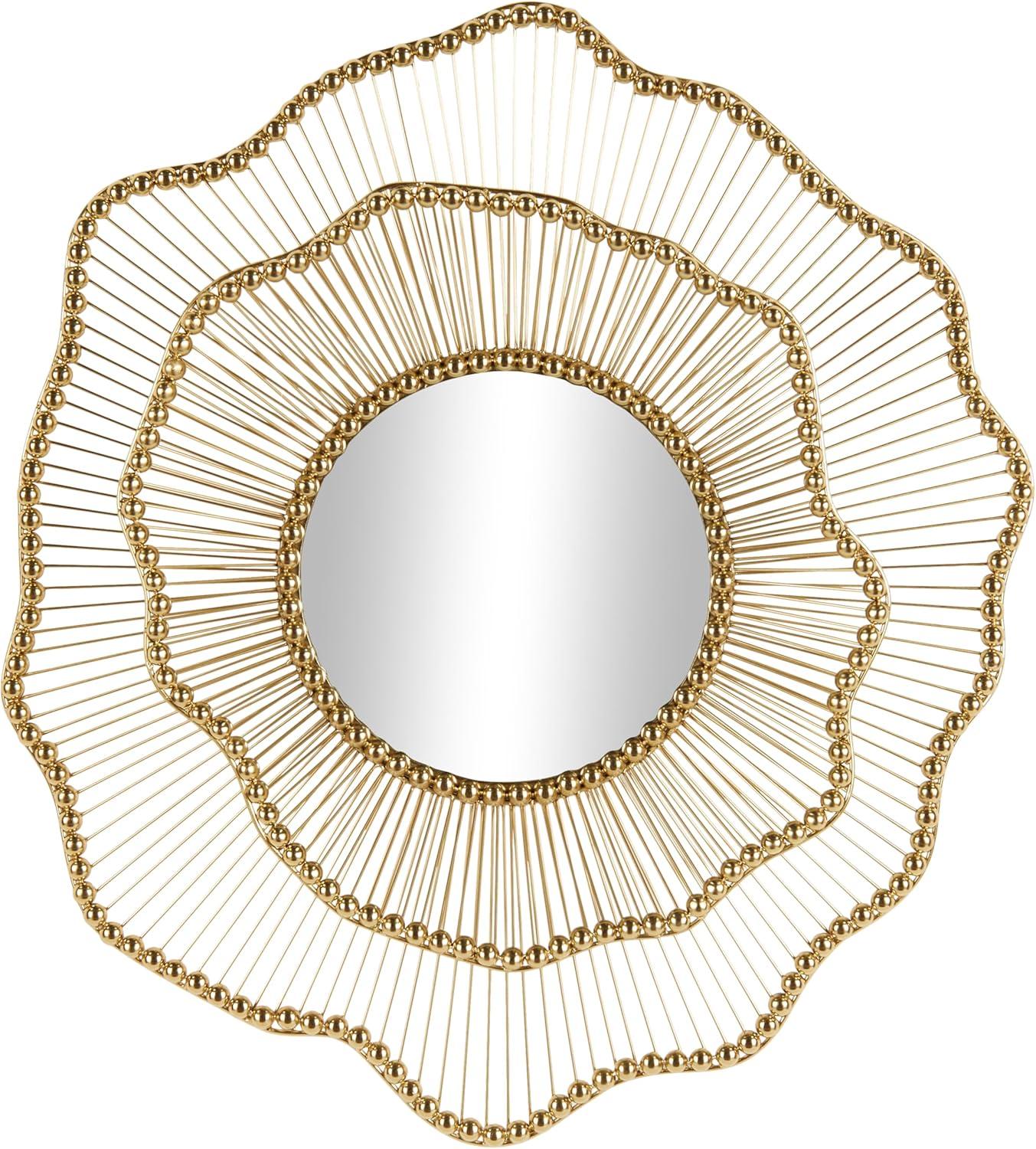 FLORAL ROUND ACCENT WALL MIRROR: The most striking feature of this gold mirror is its layered floral frame, which is inspired by the beauty of nature and adds an artistic flair