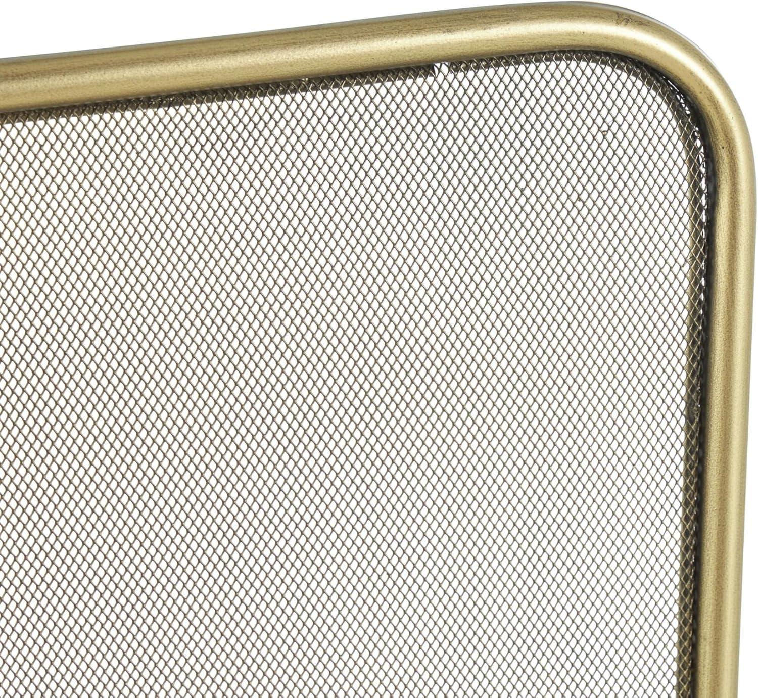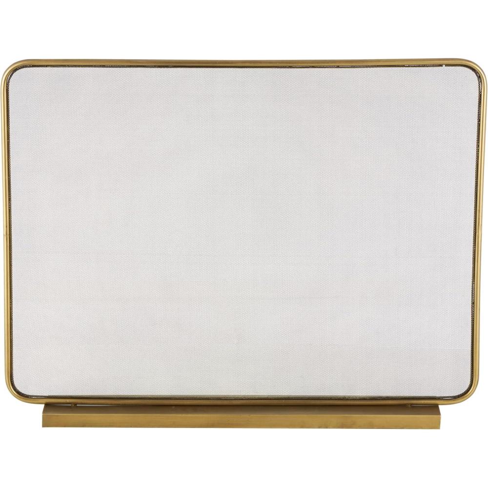 A single panel fireplace screen can be used to shield your room from sparks while adding a decorative touch to your fireplace area. This item ships in 1 carton. Please note that this item is for decorative use only. Suitable for indoor use only. This item ships fully assembled in one piece. Item features a single panel screen. This is a single gold colored fire spark guard. Industrial style.