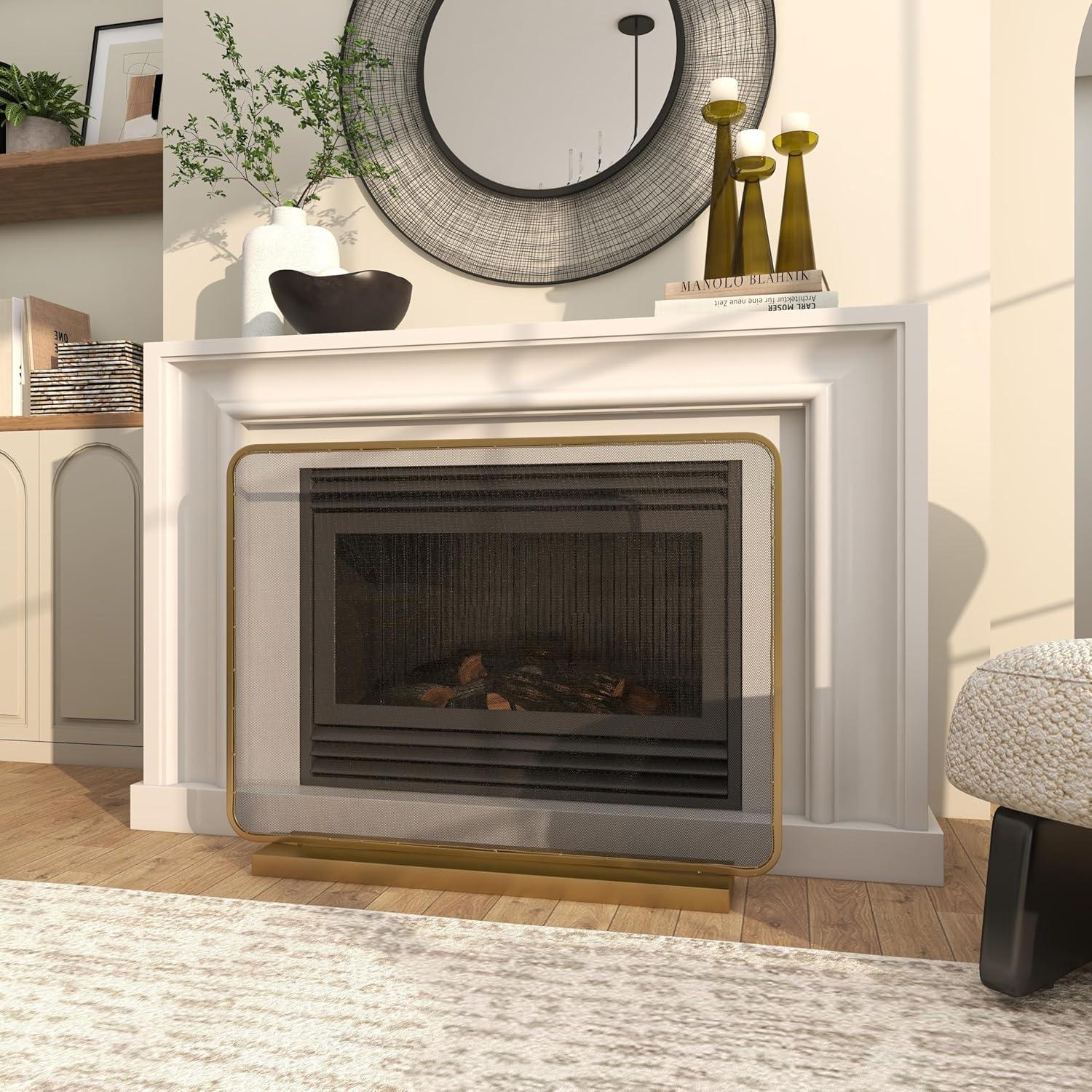 LARGE SIZE: The gold metal fireplace screen measures 37.8L x 5.1W x 29H inches, and weighs 9.7 lbs