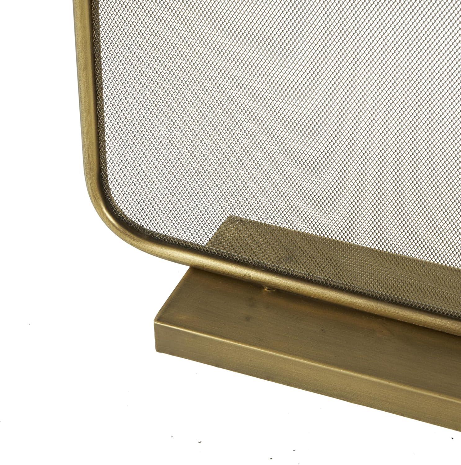 Deco 79 Metal Geometric 1 Panel Fireplace Screen with Rounded Edges and Rectangular Base, 38" x 5" x 29", Gold