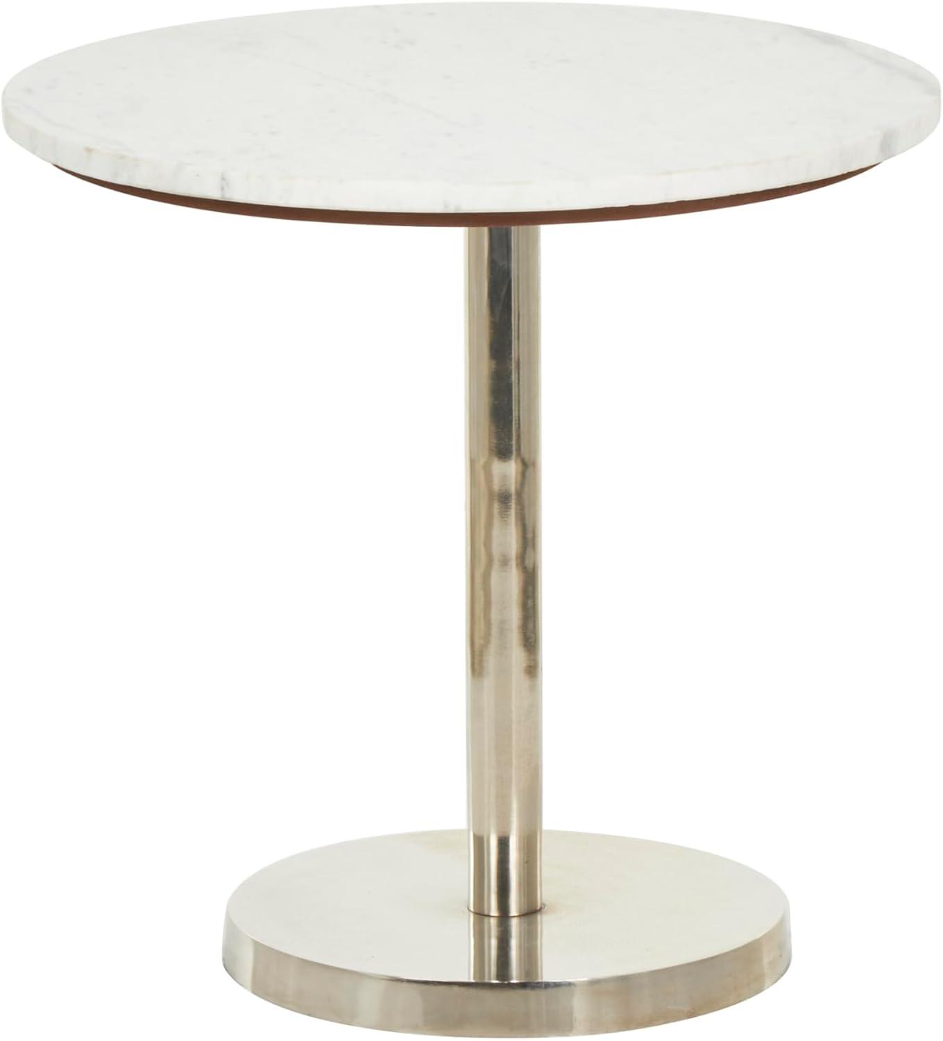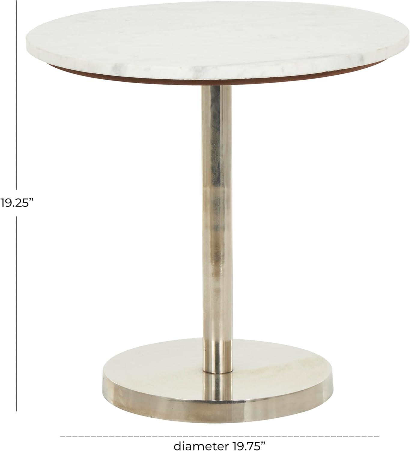 Deco 79 Metal Geometric Side End Accent Table Pedestal End Table with White Marble Tabletop, Side Table 20" x 20" x 19", Silver