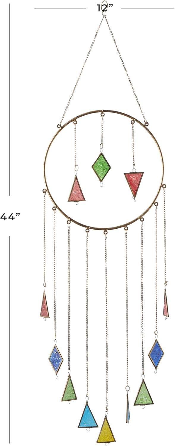 Deco 79 Metal Geometric Windchime with Stained Glass, 12" x 3" x 44", Multi Colored
