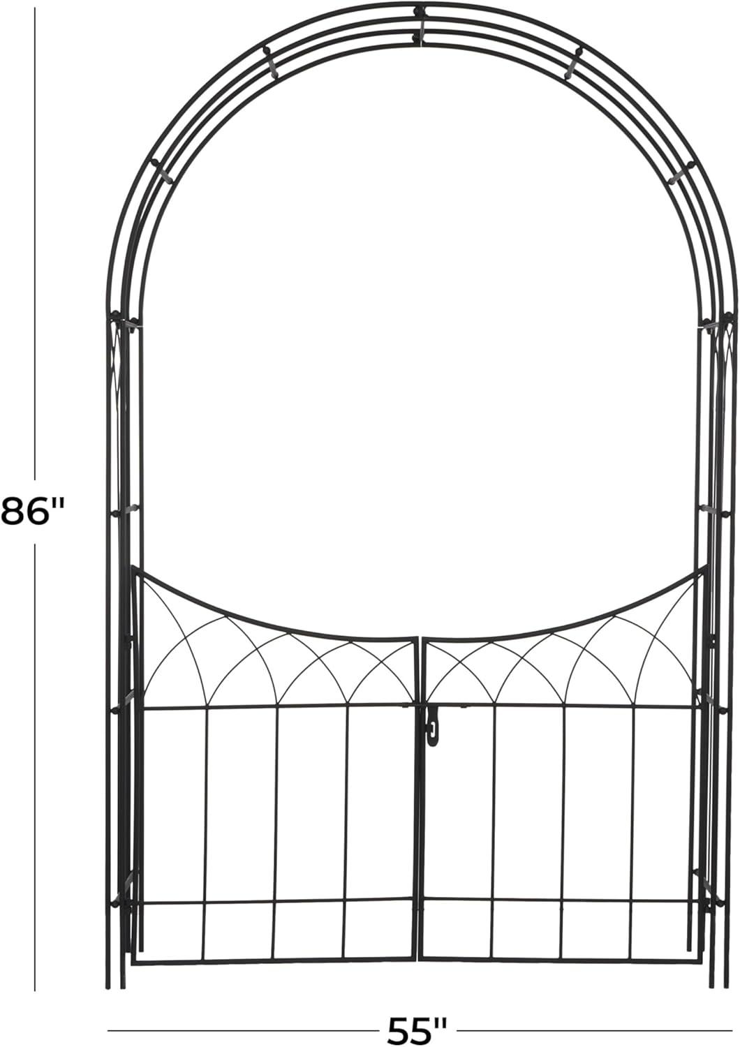 Deco 79 Metal Indoor Outdoor Arched Gate Garden Arbor with Lattice Work Sides, 55″ x 14″ x 86″, Black(Black)