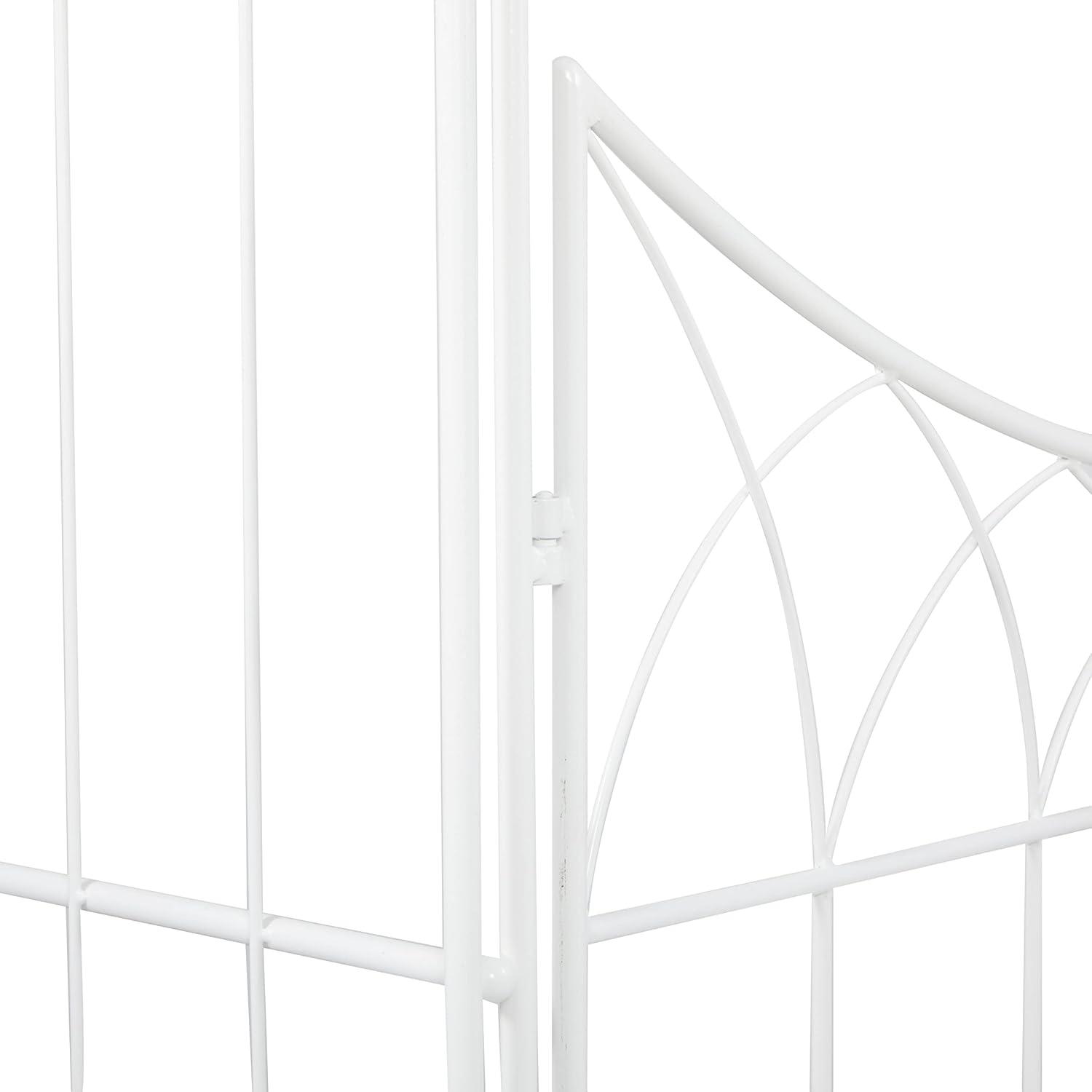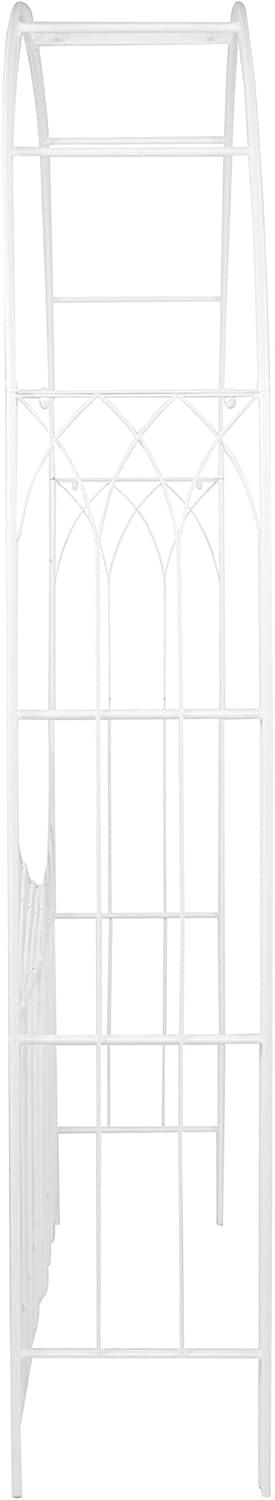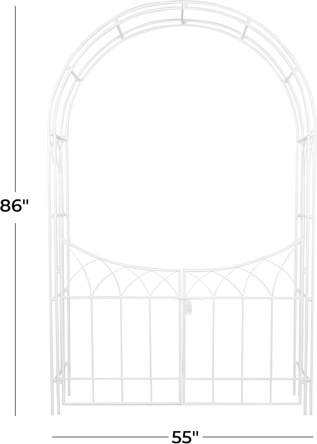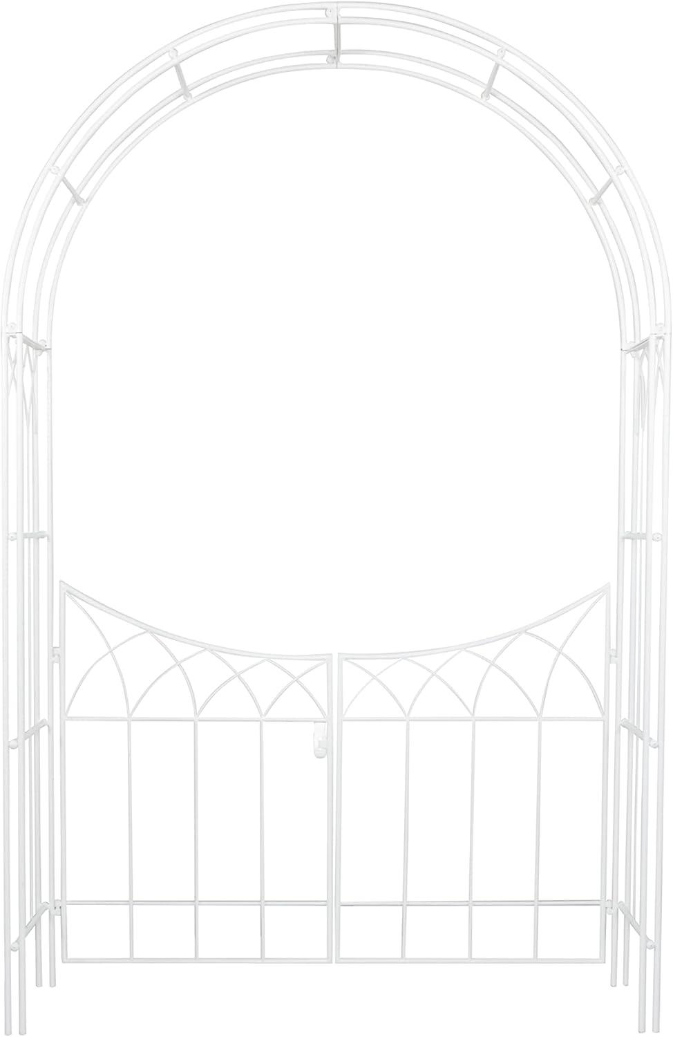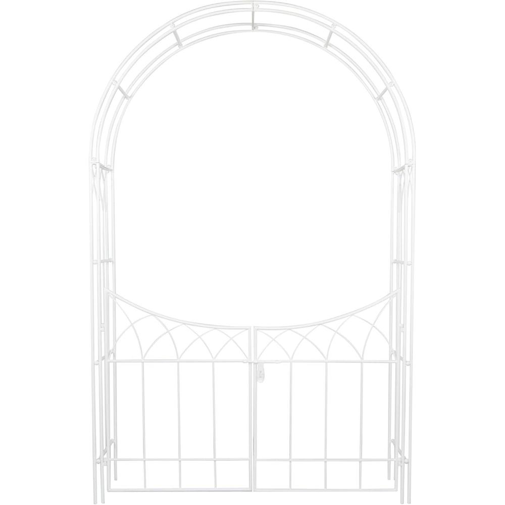 Trellis is made from bent and welded metal with hinged the gate doors. This garden arbor accentuates an arched form with a fence gate. Wipe clean with a dry cloth. A creative way to add a welcoming look with bold design into your outdoor setting. This garden arbor is perfect for creating a focal point over in your outdoor patio space. Welcome your guests while flaunting your flowering vines with this arch garden arbor trellis with gates. This item ships in 1 carton. Outdoor garden accent requires stakes to secure it to the ground; stakes are not included. Suitable for indoor and outdoor use. Some assembly required. This is a single black colored garden gate. Traditional style.