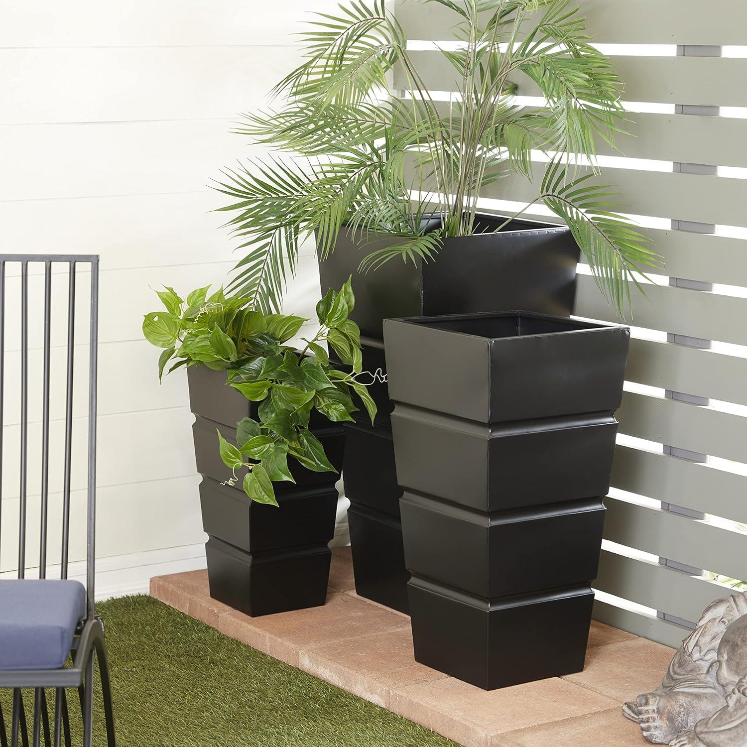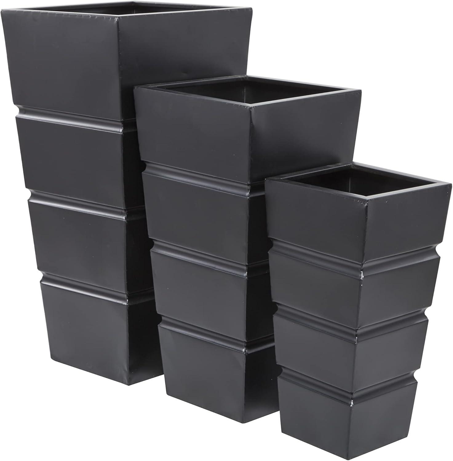 SQUARE PLANTERS FOR OUTDOOR PLANTS: The unique features of this metal set of 3 planters include a tapered base and a fluted design that adds an aesthetic appeal