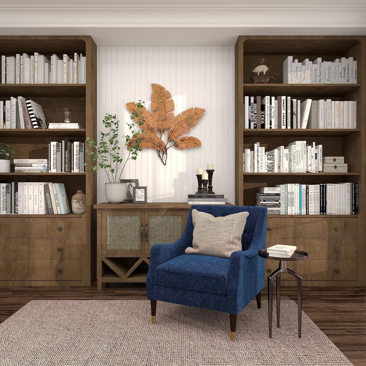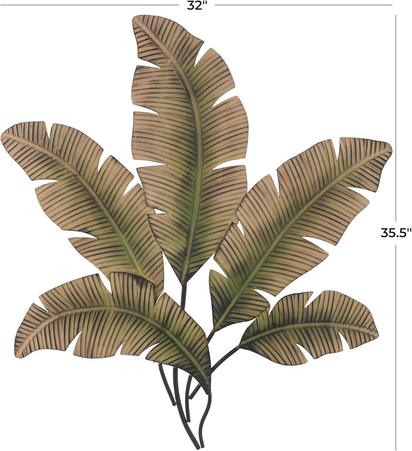 FEATURES BOTANICAL AND FLORAL WALL DECOR: Brown wall decor features 5 carved leaf sculptures bundled by their stems with curved shapes, indentations for leaf veins, and textural light and dark brown finishes