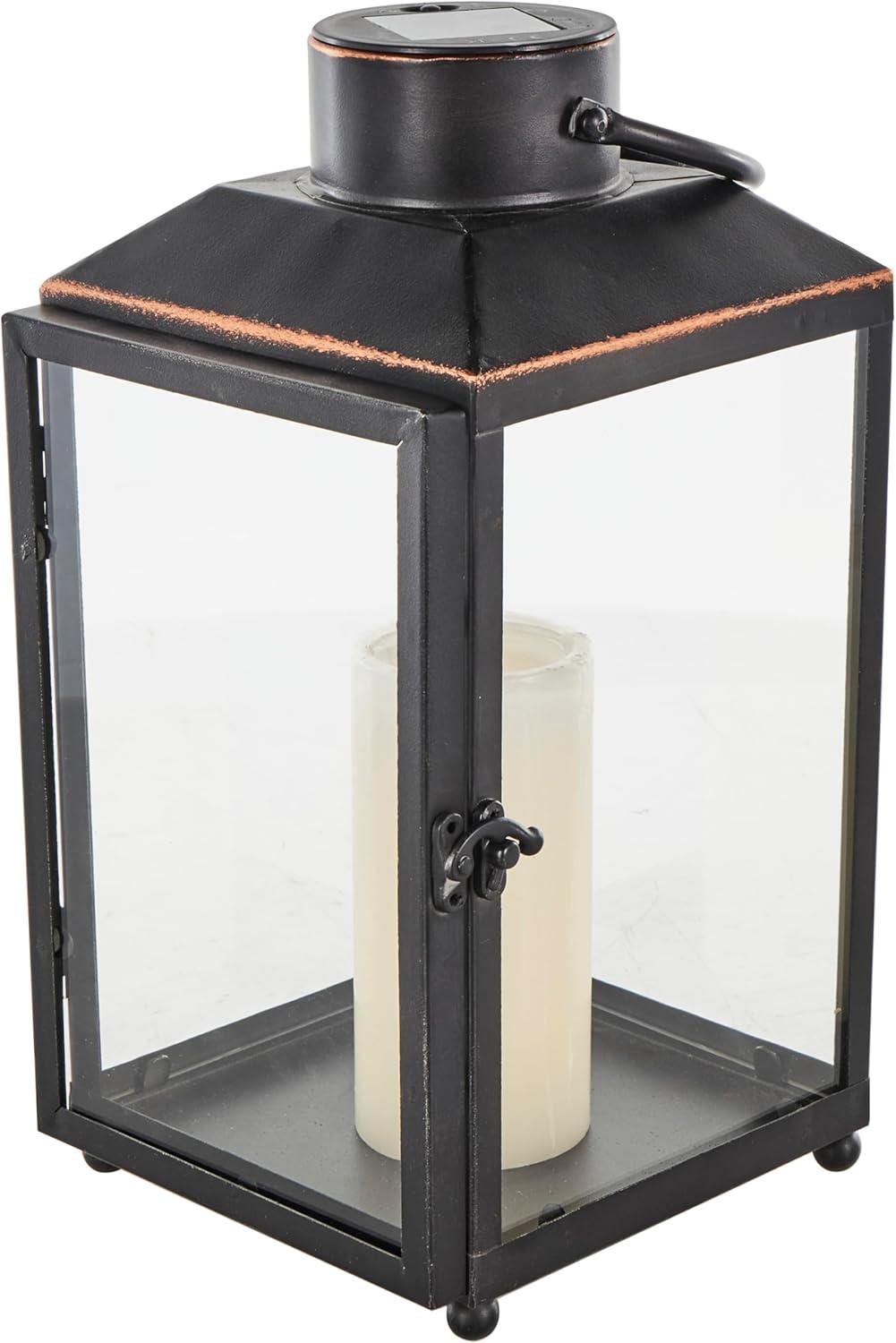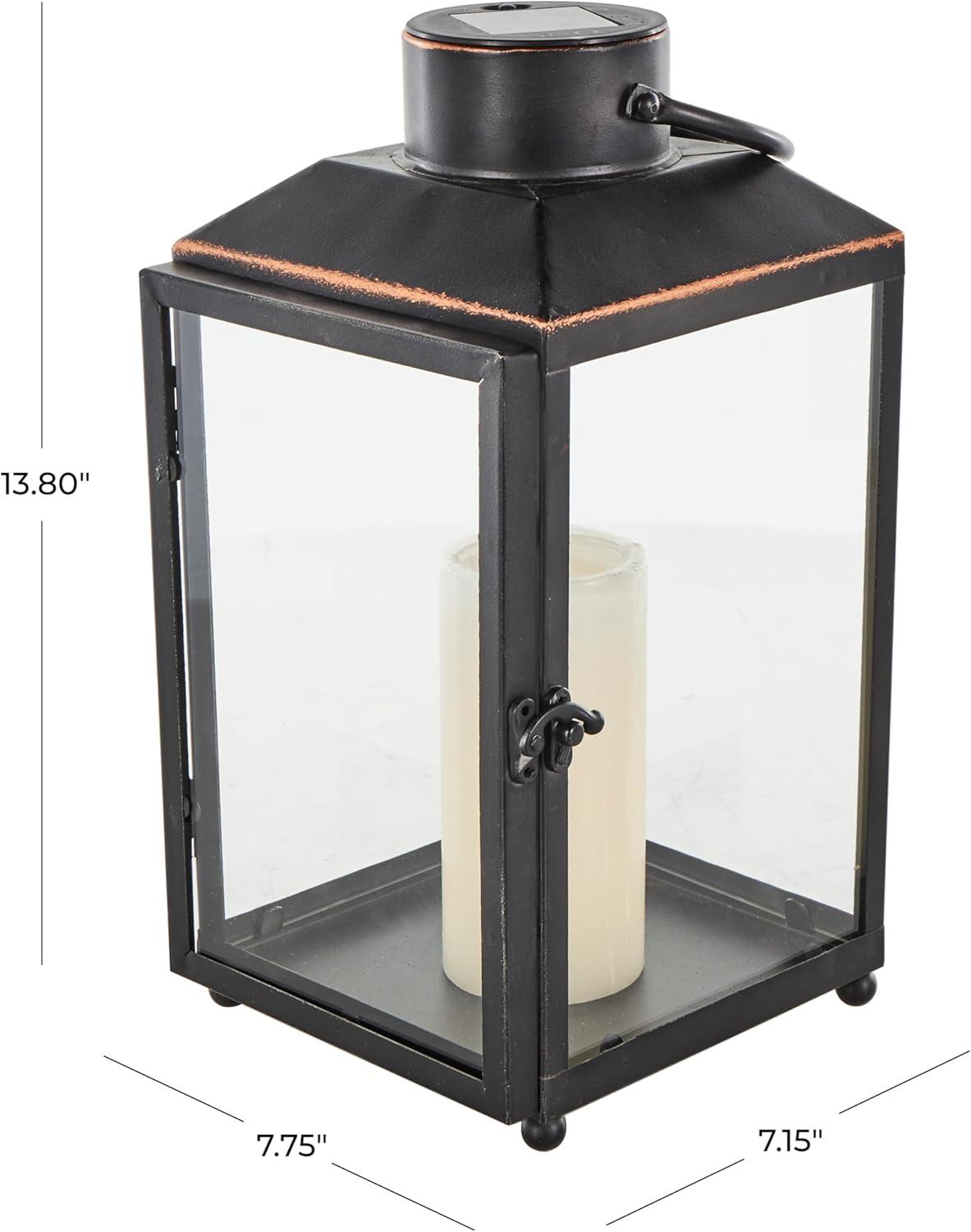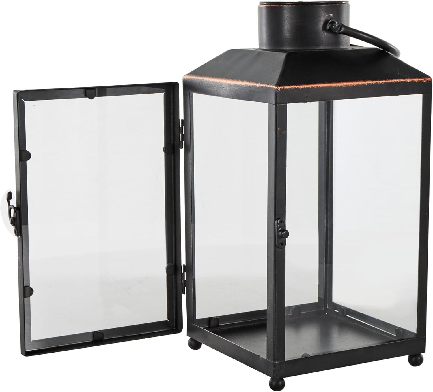 Deco 79 Metal Modern Candle Lantern with Gold Accents, 8" x 7" x 14", Black(8" x 7" x 14)