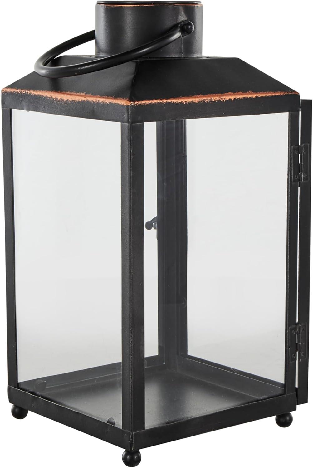 Deco 79 Metal Modern Candle Lantern with Gold Accents, 8″ x 7″ x 14″, Black(8″ x 7″ x 11″)