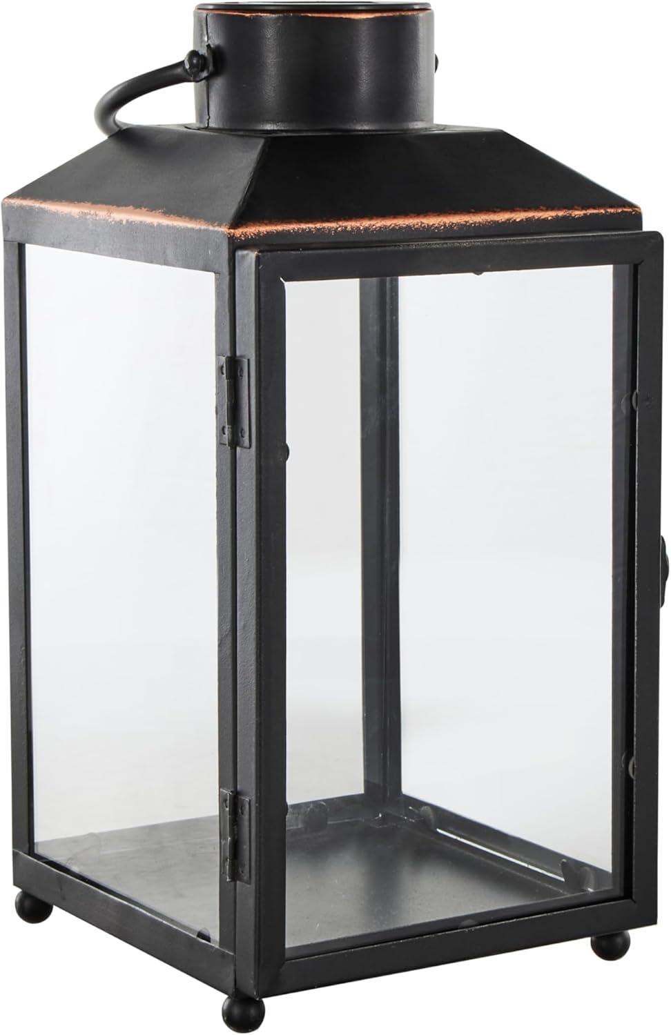 SMALL SIZE: The black metal candle lantern measures 7.75L x 7.15W x 13.8H inches, and weighs 3.645 lbs