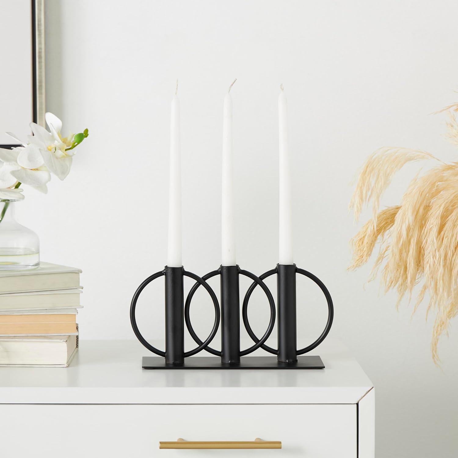 Deco 79 Metal Overlapping Circular Ring Candelabra, 11″ x 3″ x 5″, Black(Black)
