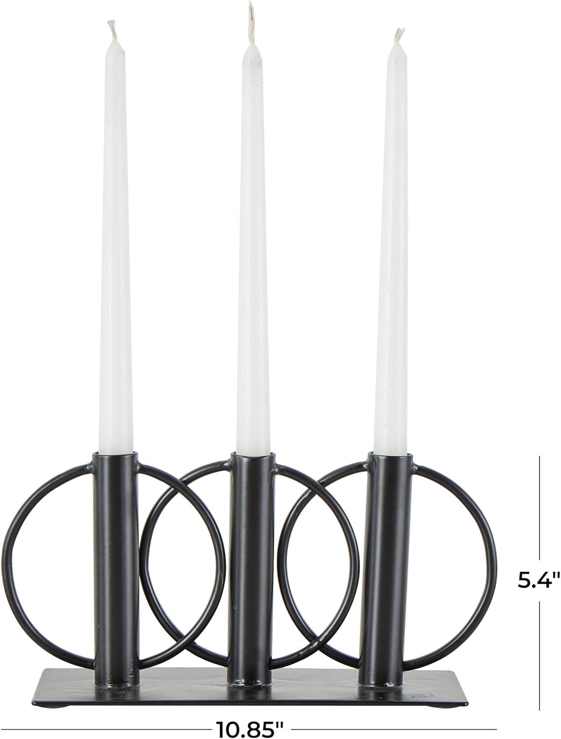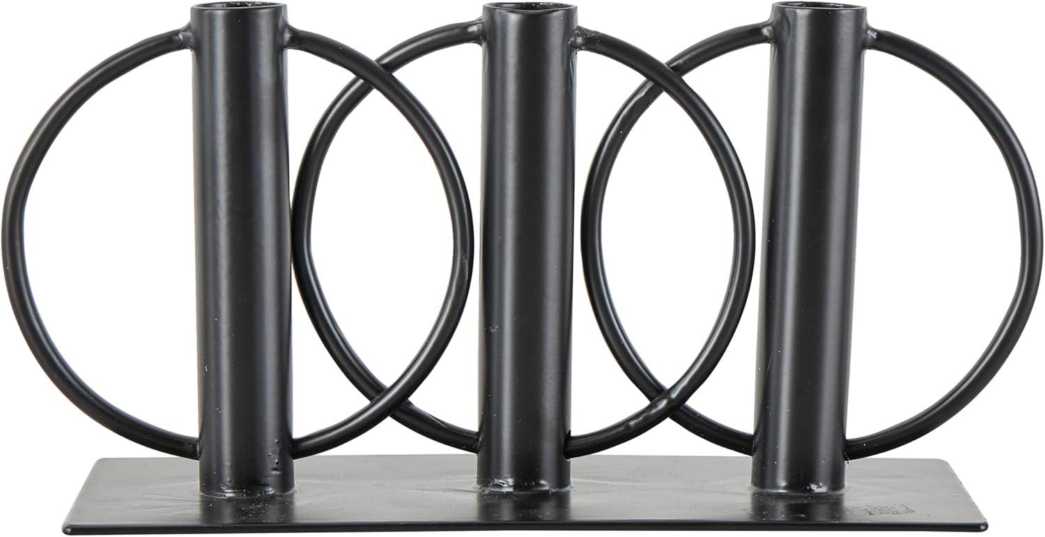 Deco 79 Metal Overlapping Circular Ring Candelabra, 11" x 3" x 5", Black(Black)